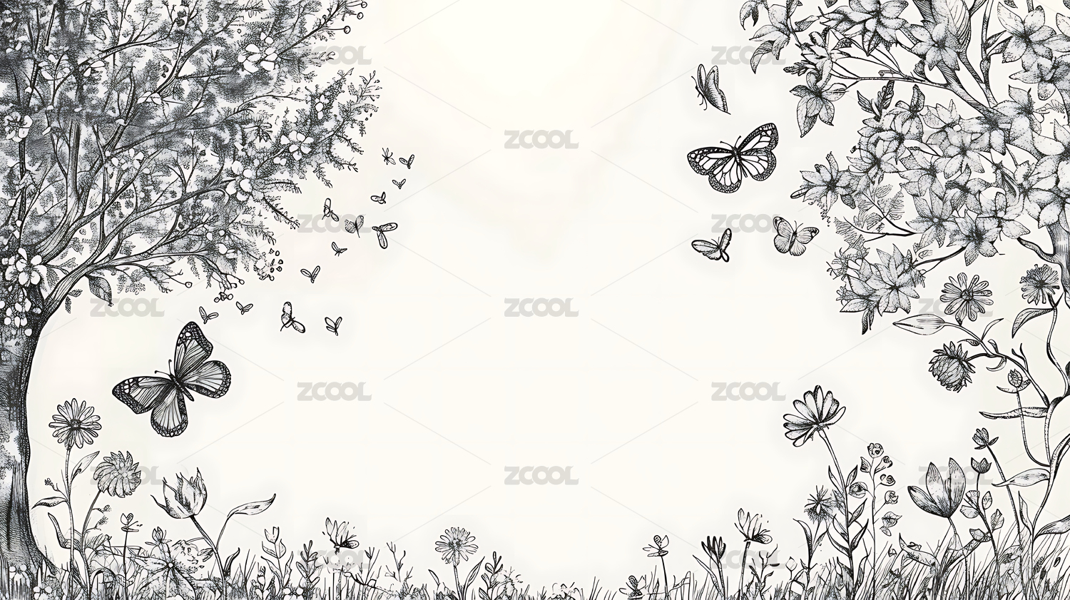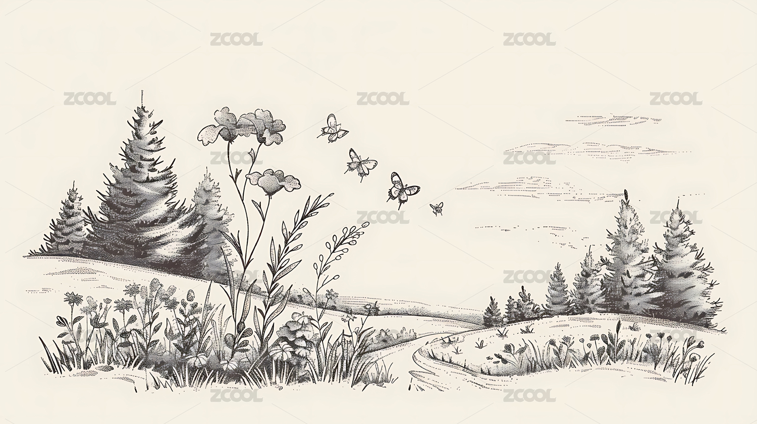 线稿,手绘,风景,插画,写生,黑白,线条,手稿,自然,景色