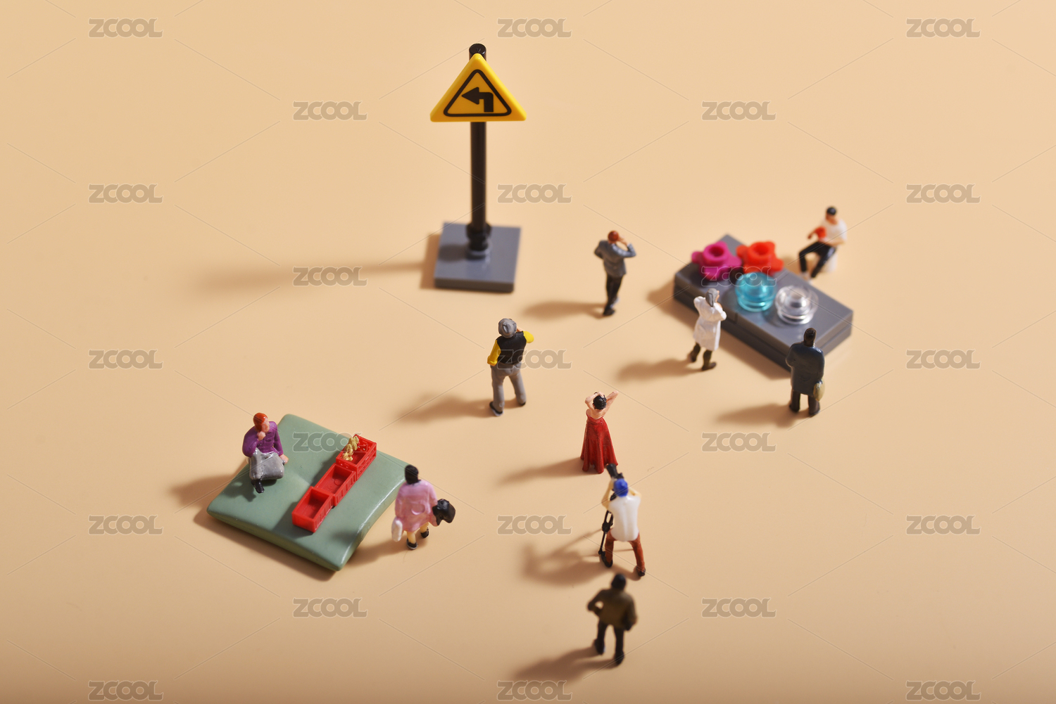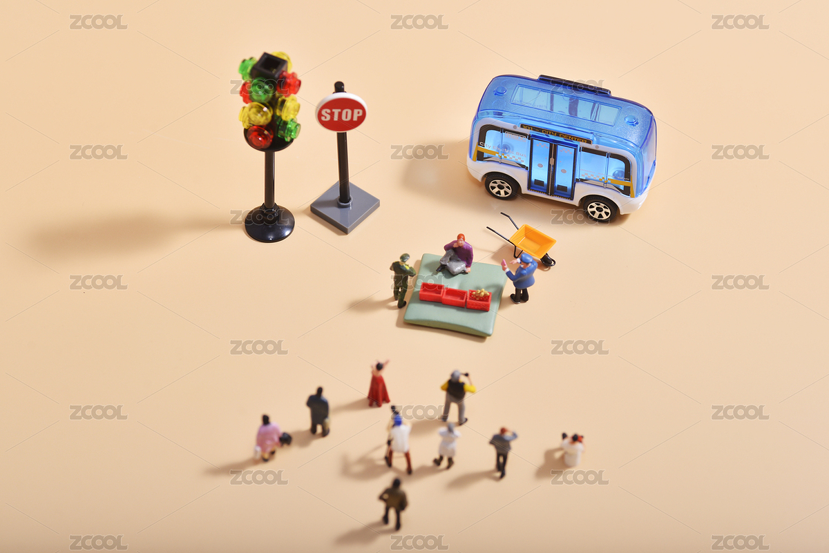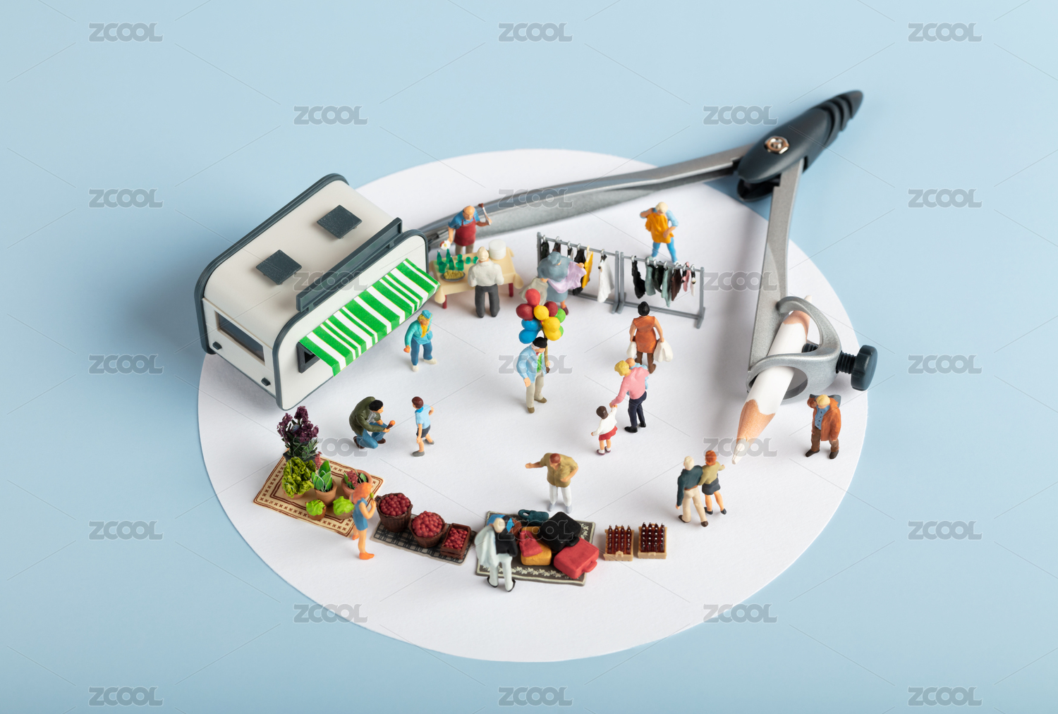 地摊经济,微缩场景,微缩小人,概念创作,微观场景,微观艺术,纯色,微型人,小人偶,地摊