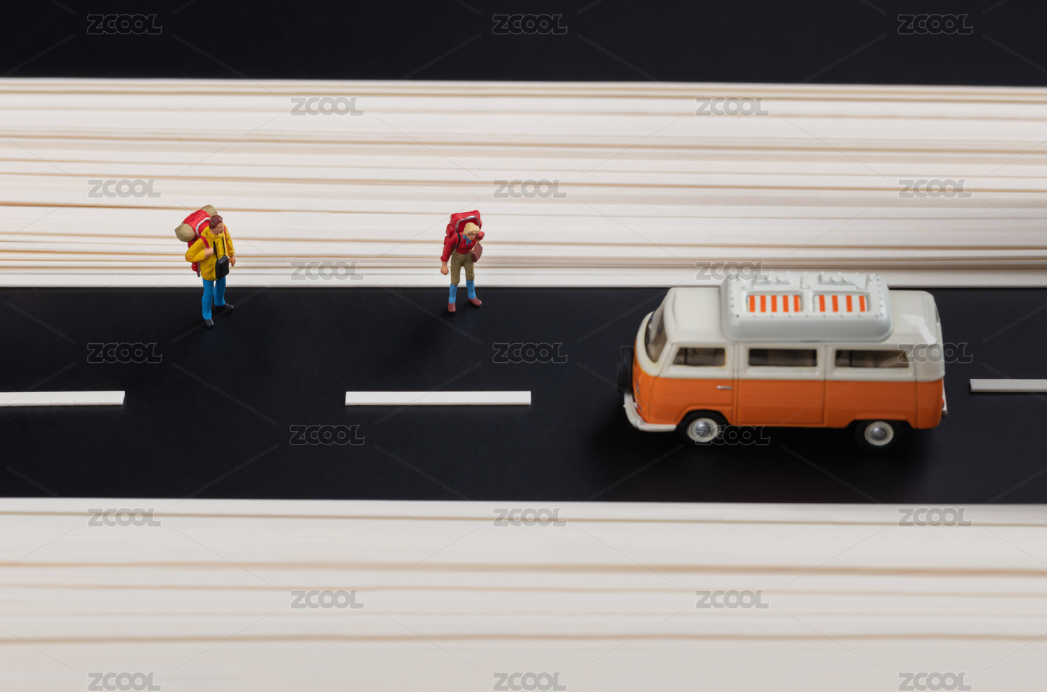 橘黄色背景上的微缩创意摄影关于机动车限行