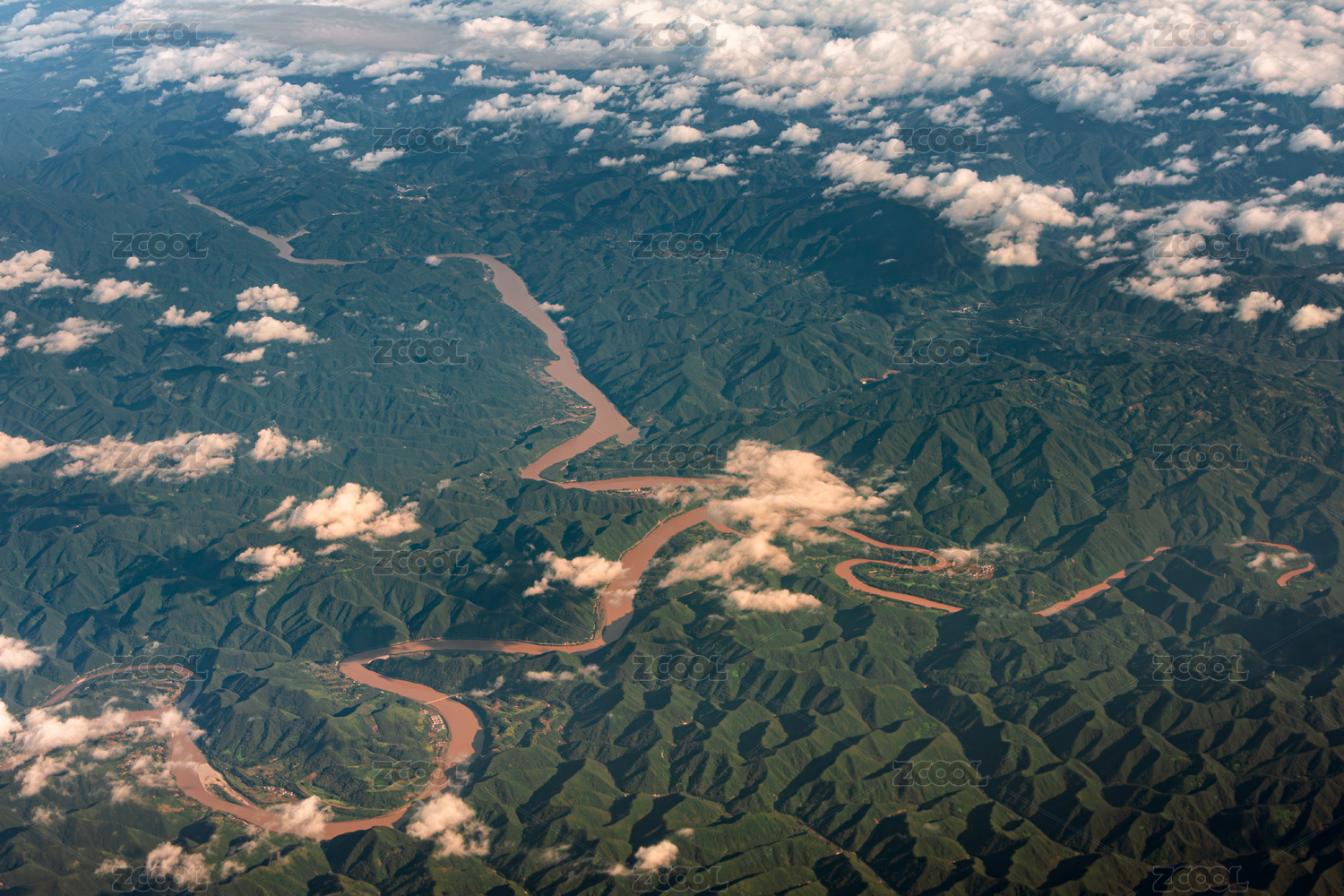 中国陕西汉中西乡县牧马河和汉江汇流处航拍