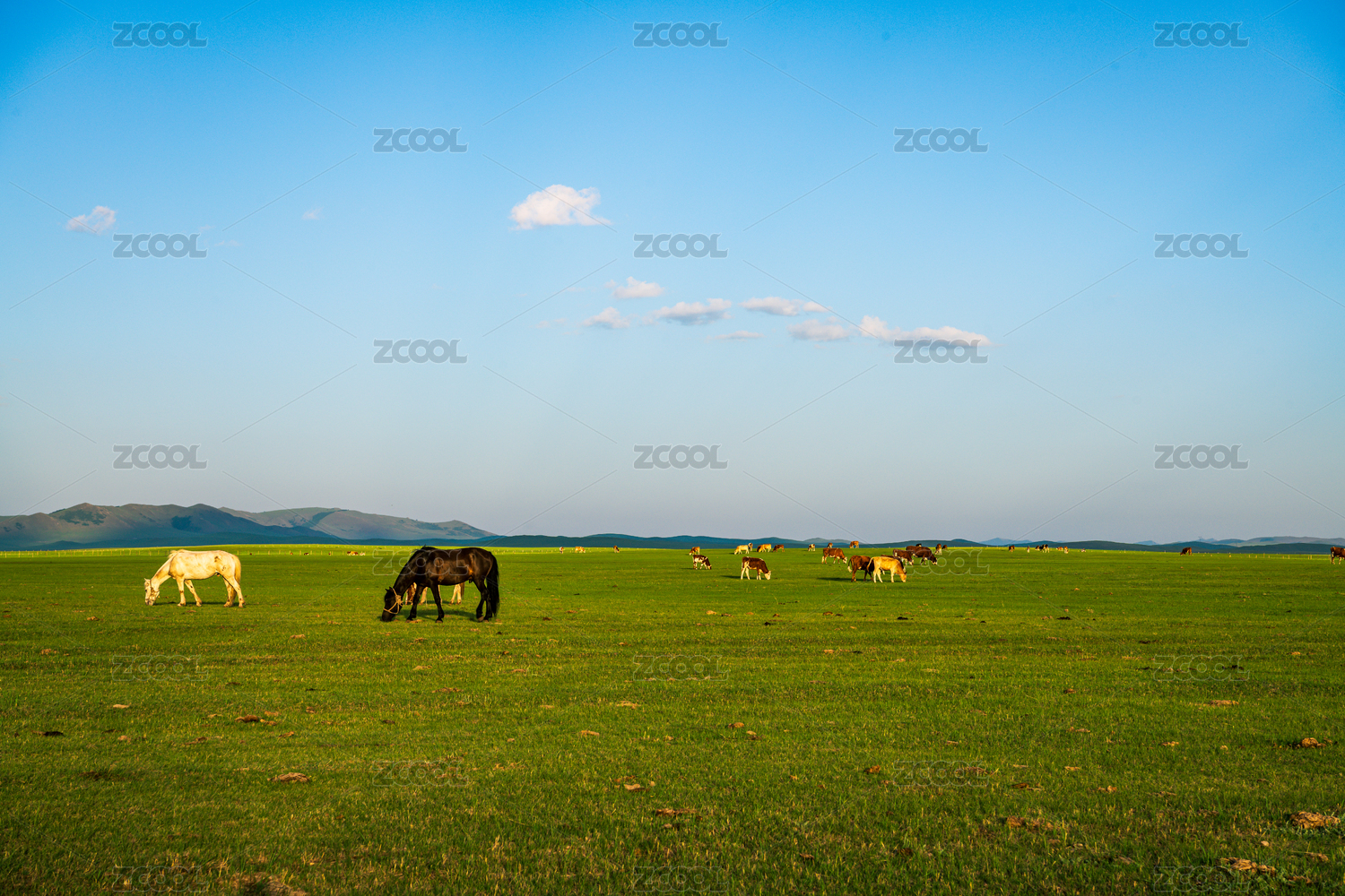 内蒙古克什克腾旗达达线草原上的牛马吃草