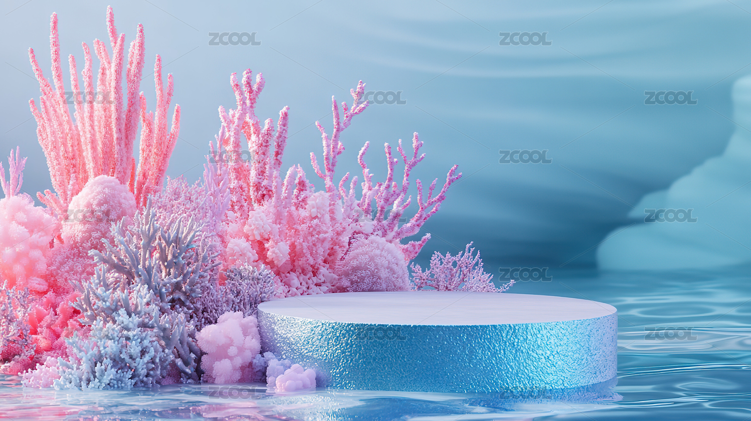 海洋主题圆形电商产品展台3D场景