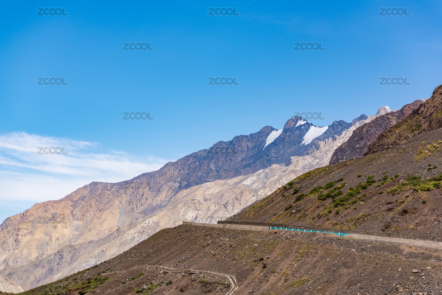 中国雪山高原旁公路路面