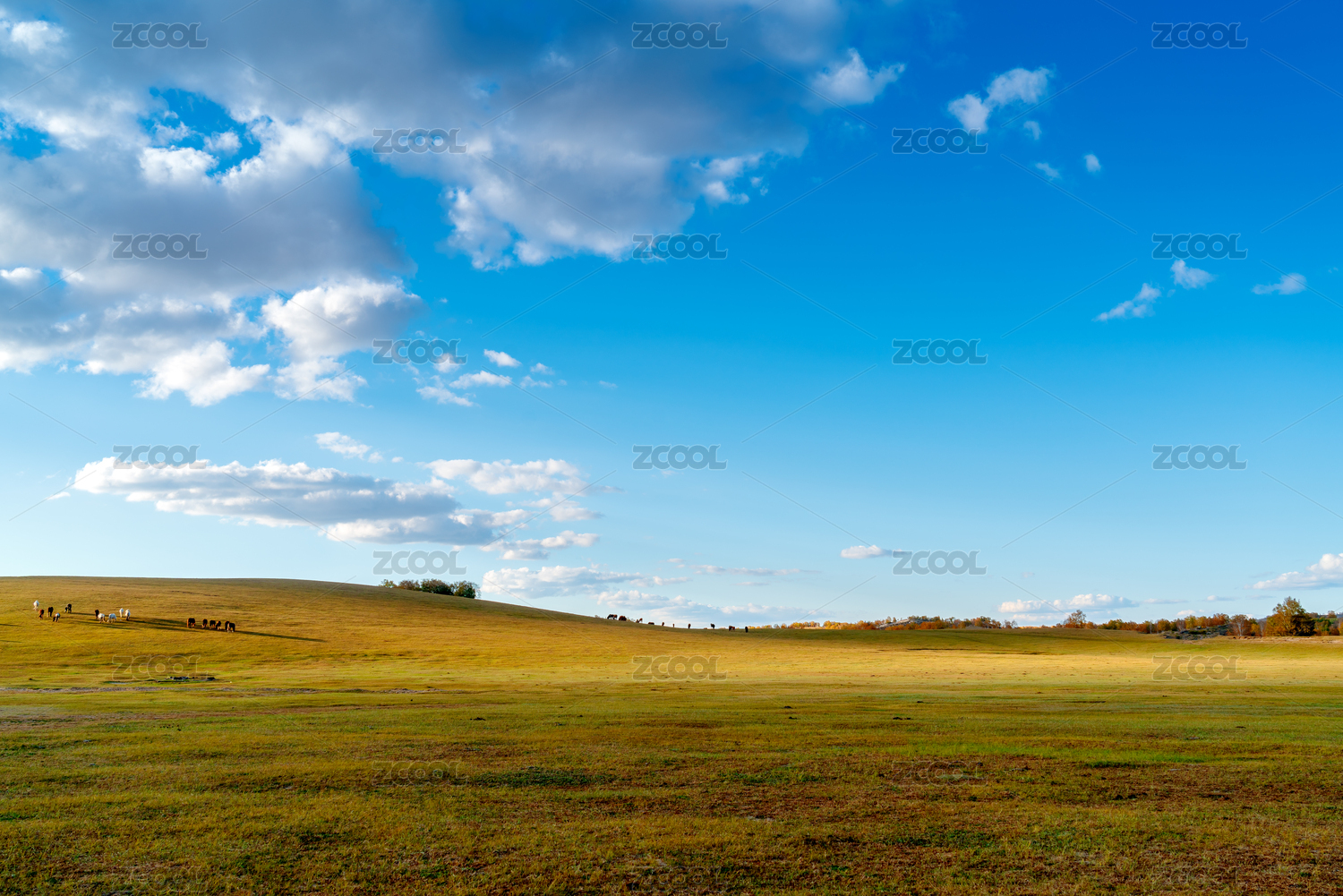 内蒙古呼伦贝尔草原秋季自然风光牧场