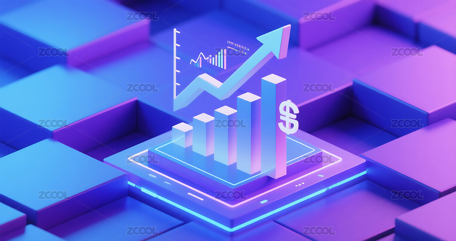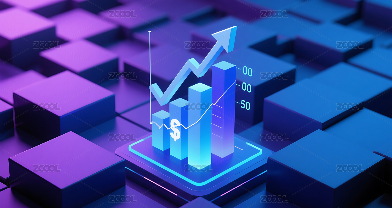 紫蓝色几何金融经济柱状图插画背景壁纸