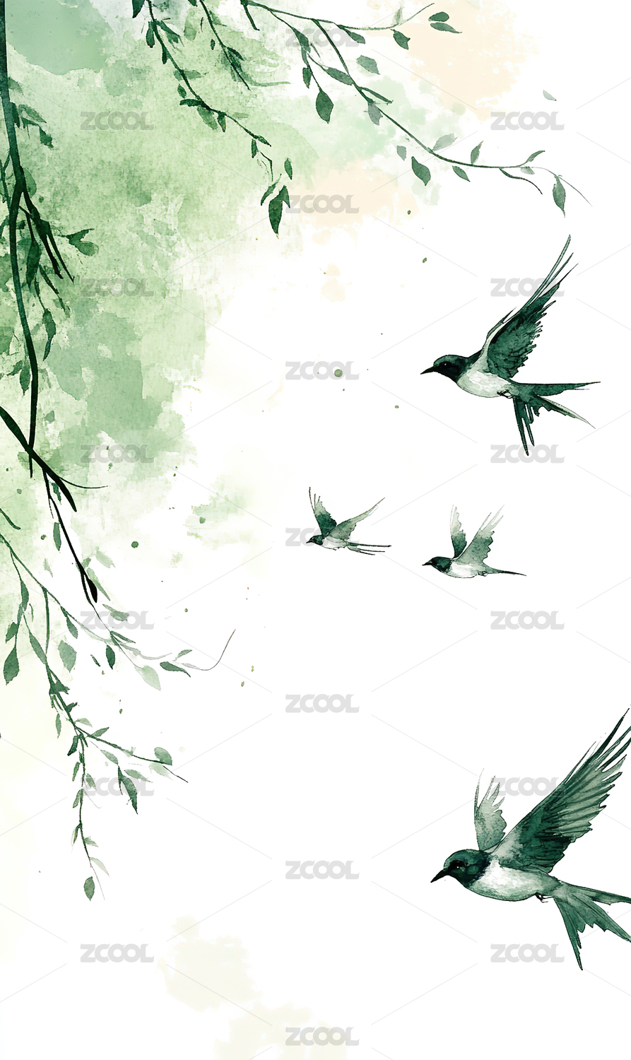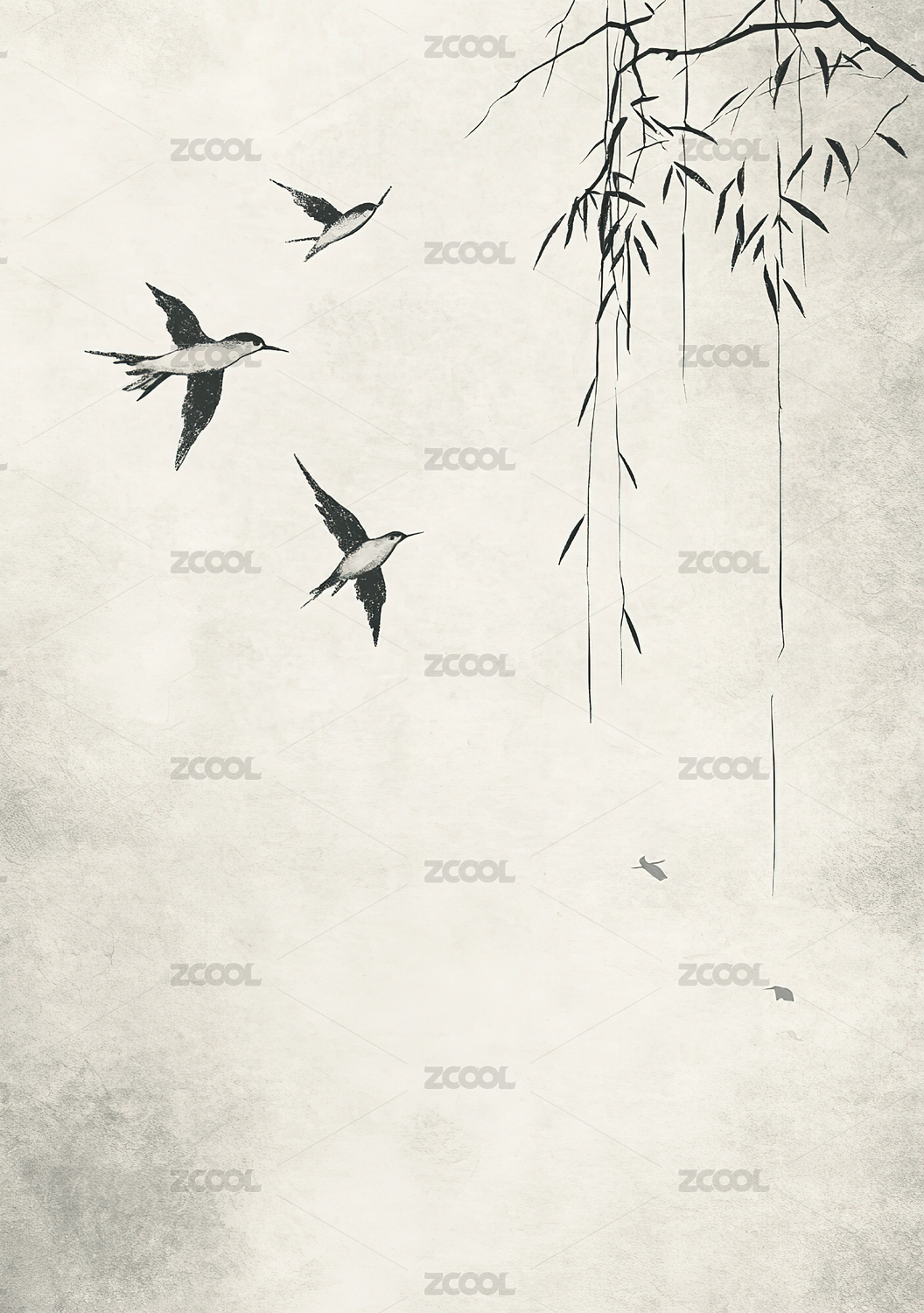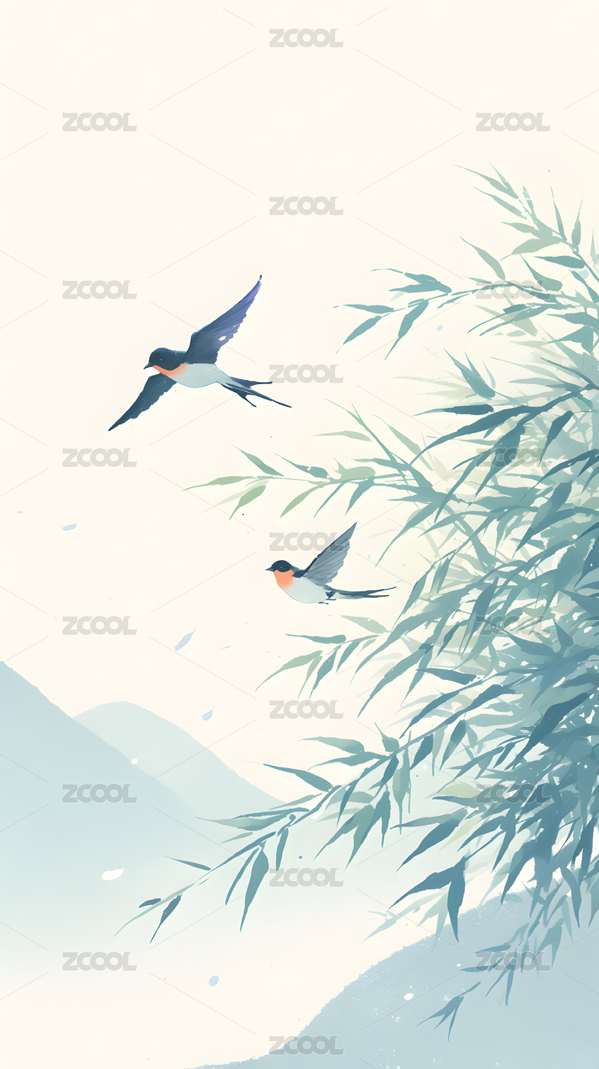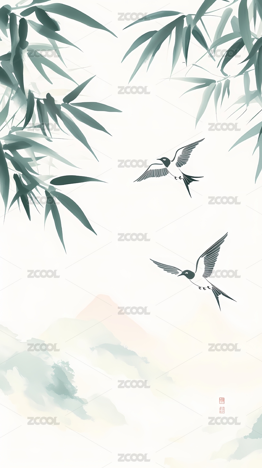 水墨画,水墨,中国风,古风,鸟,动物,竹枝,飞翔,宁静,场景