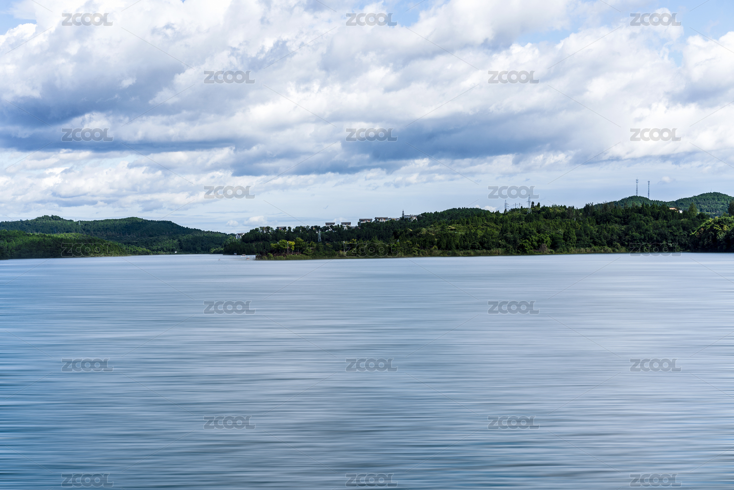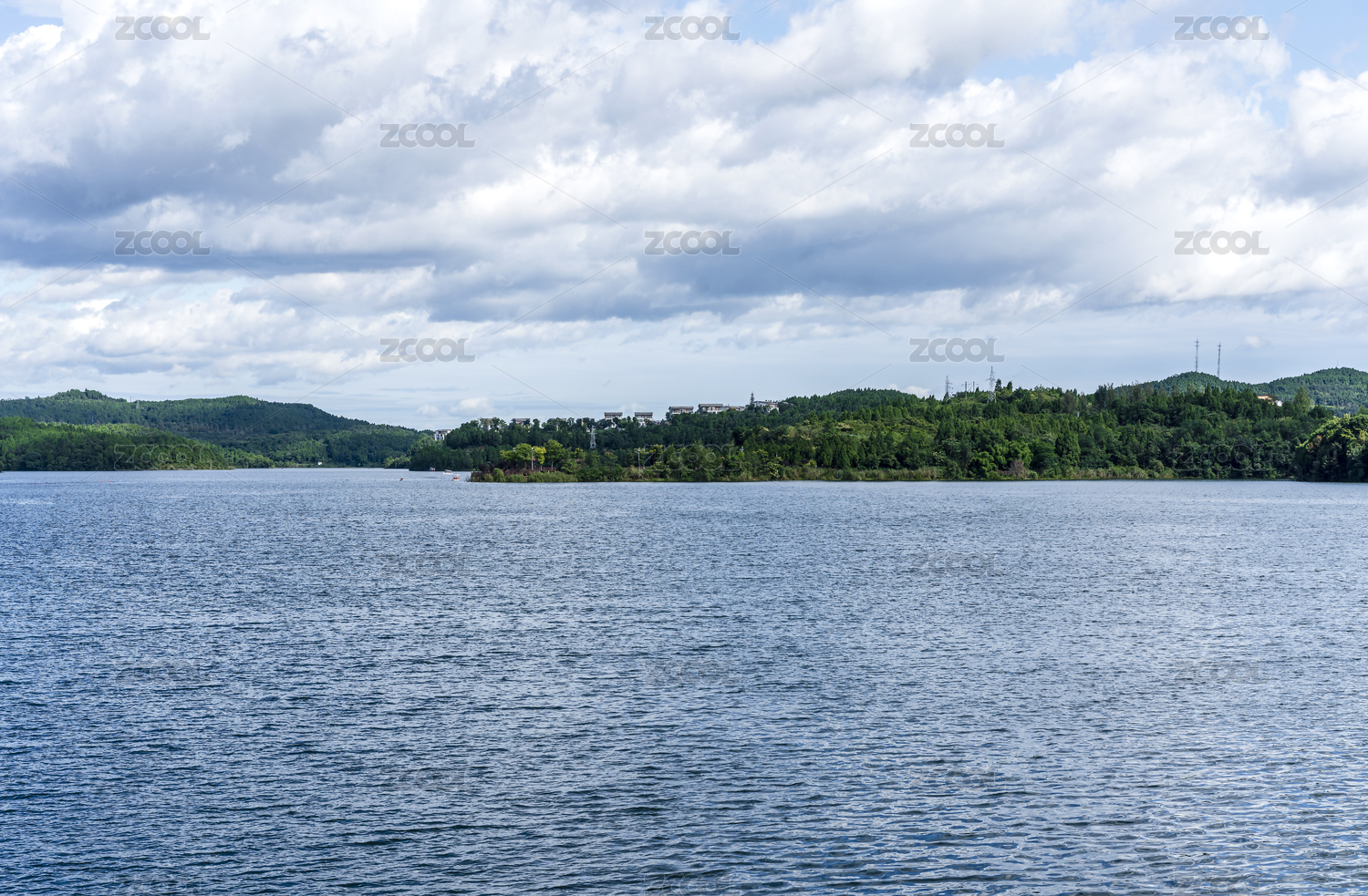 蓝天下四川省绵阳市沉抗水库仙海风光
