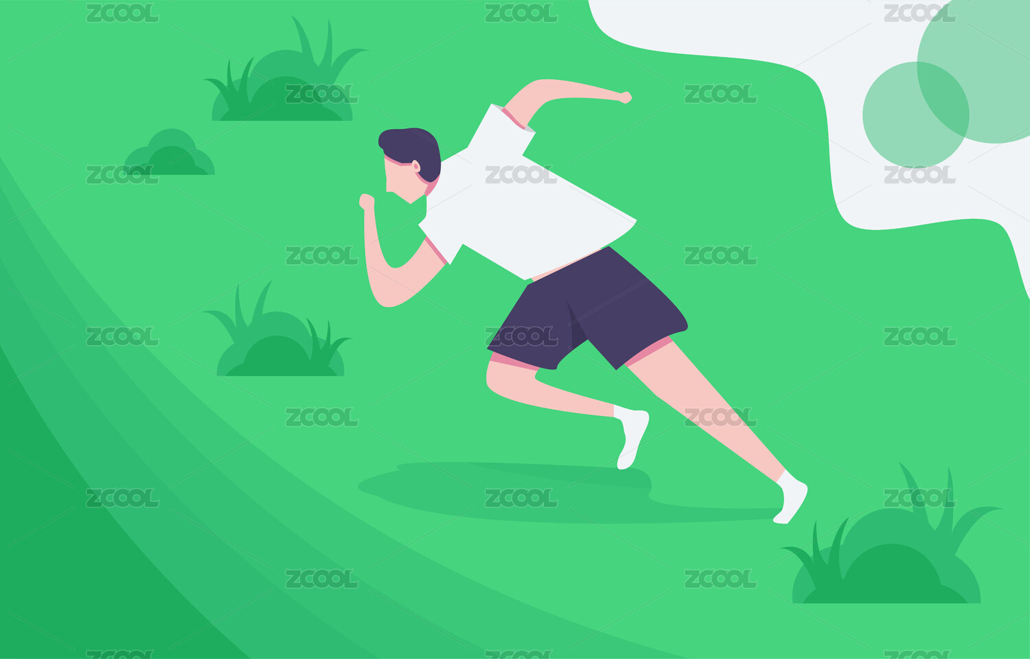 夏天人物清晨跑步运动健身健康减肥锻炼插画