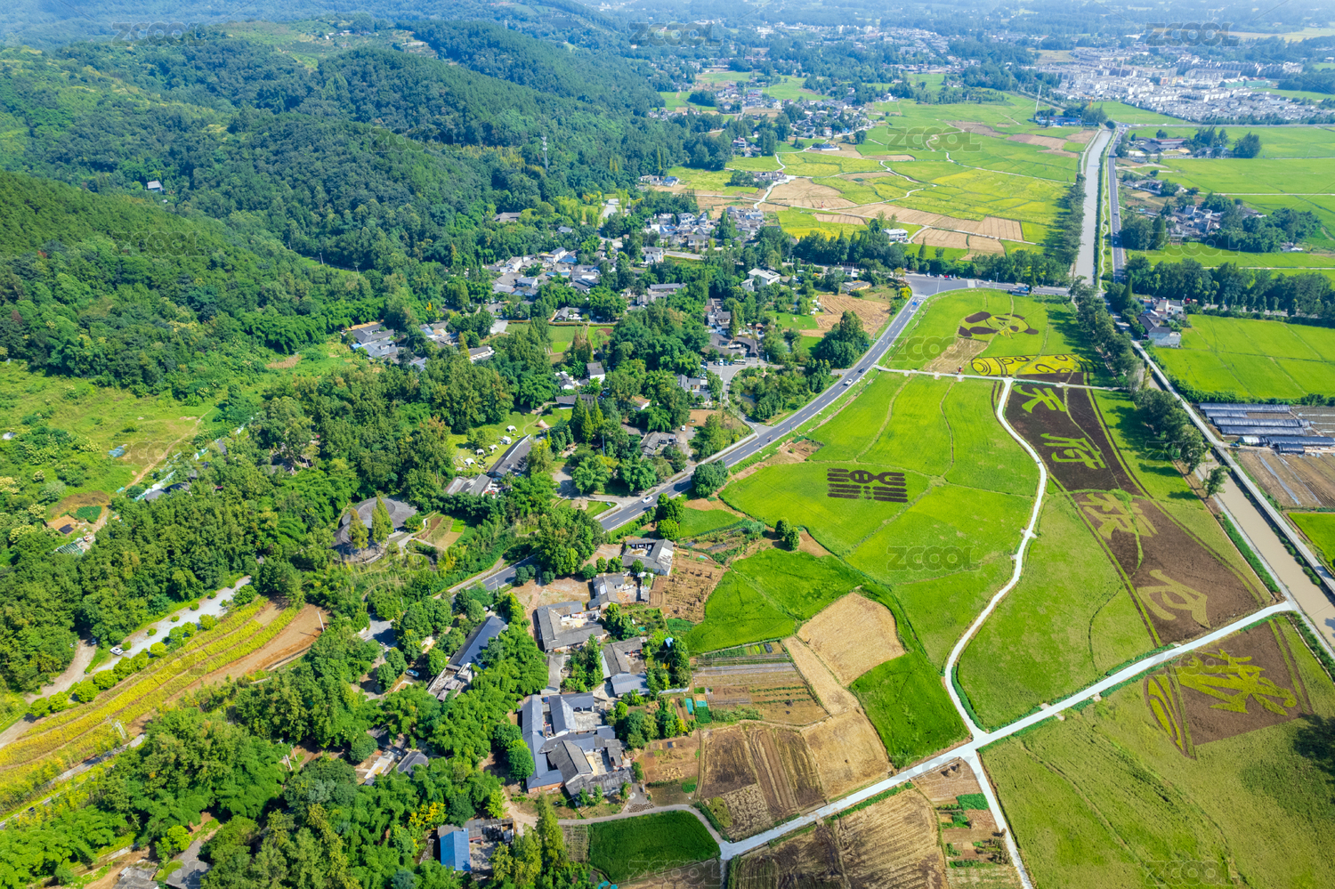 成都崇州道明竹艺村白昼航拍乡村旅游新农村