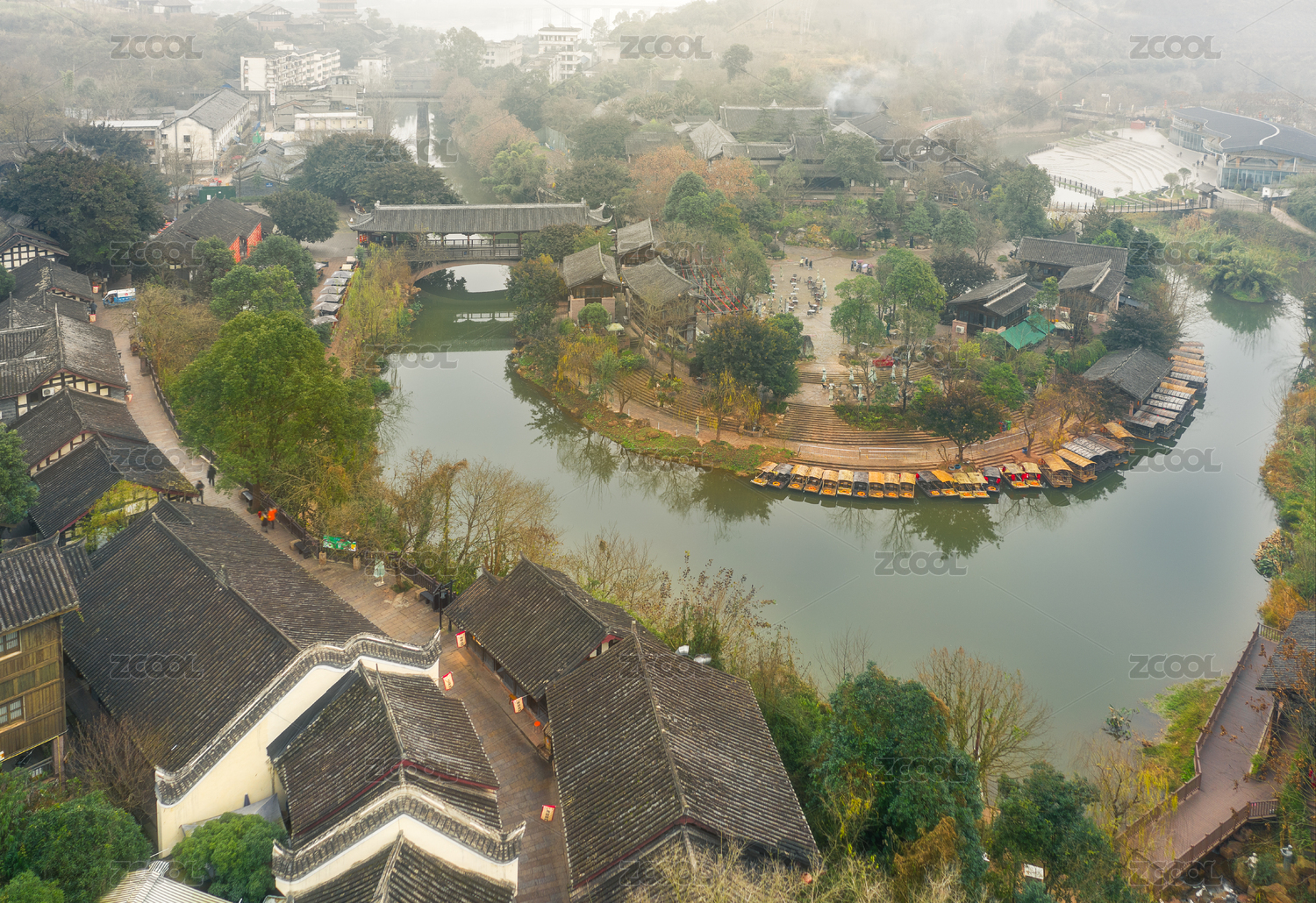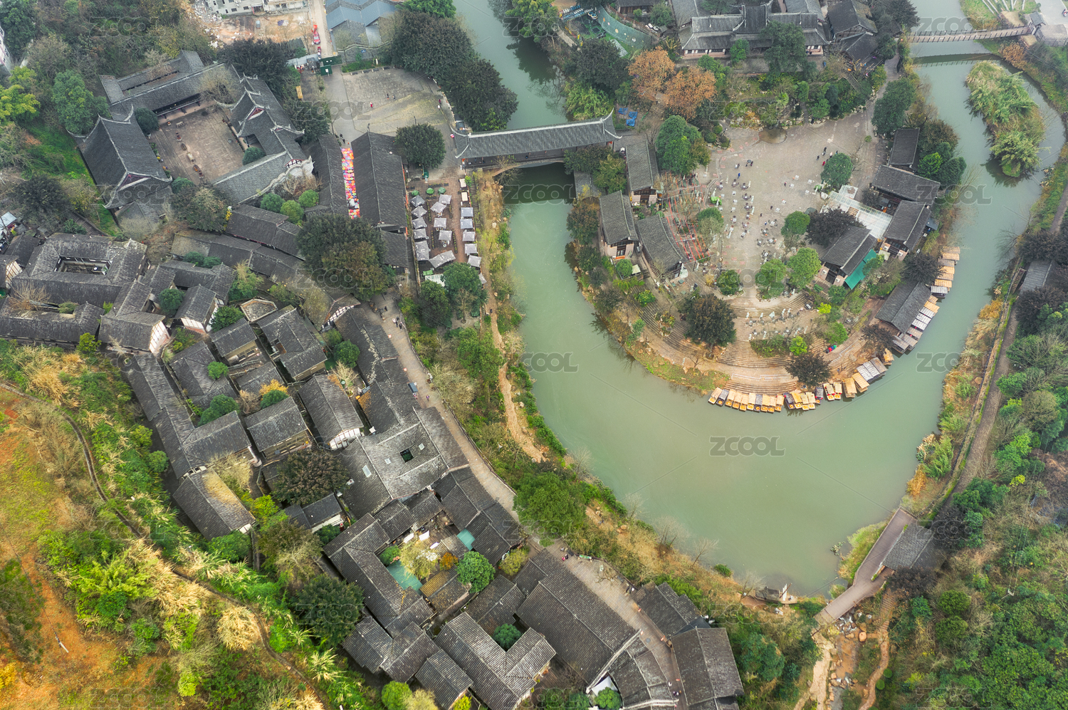 四川省成都市金堂县五凤溪古镇建筑风光航拍