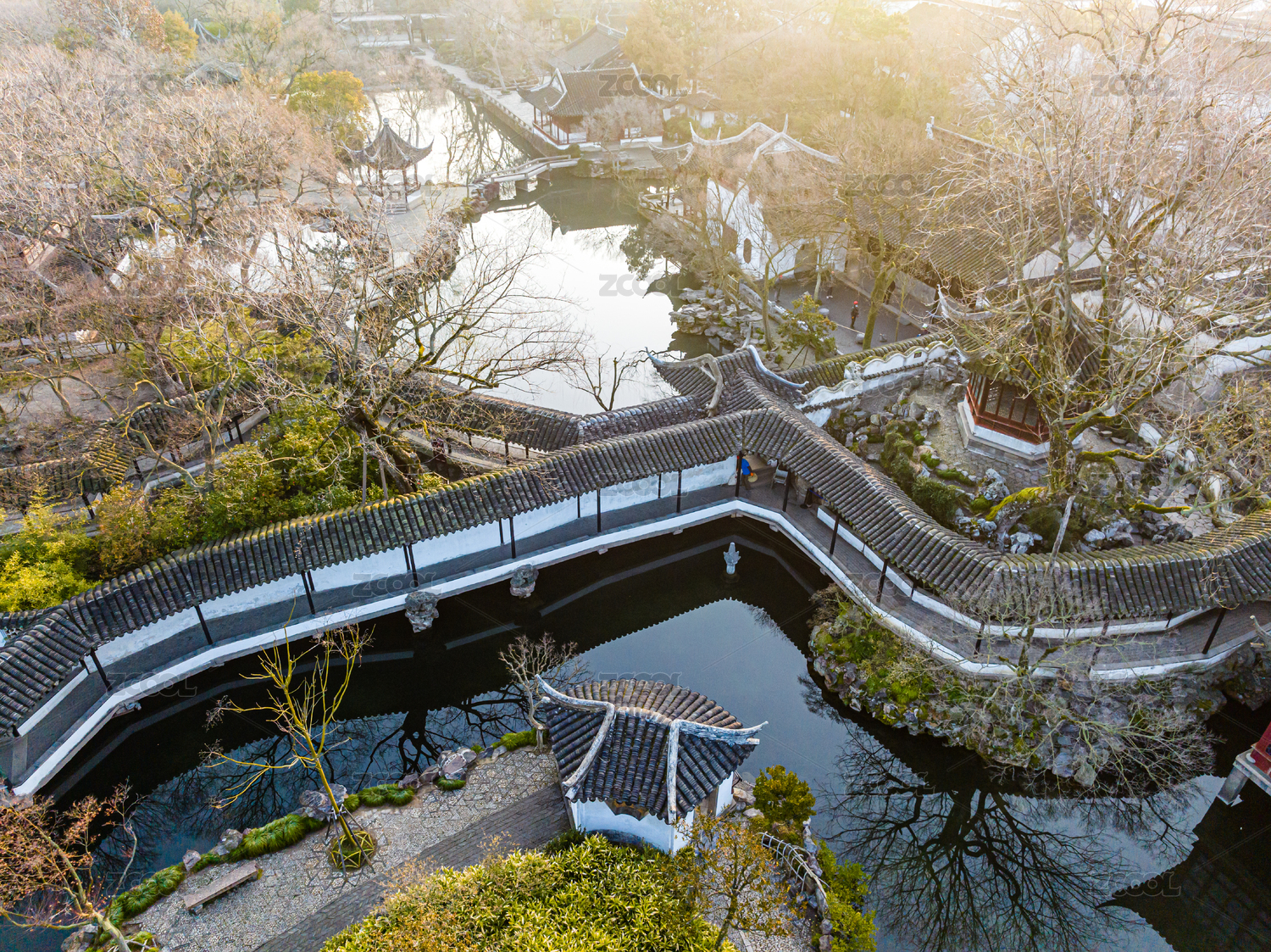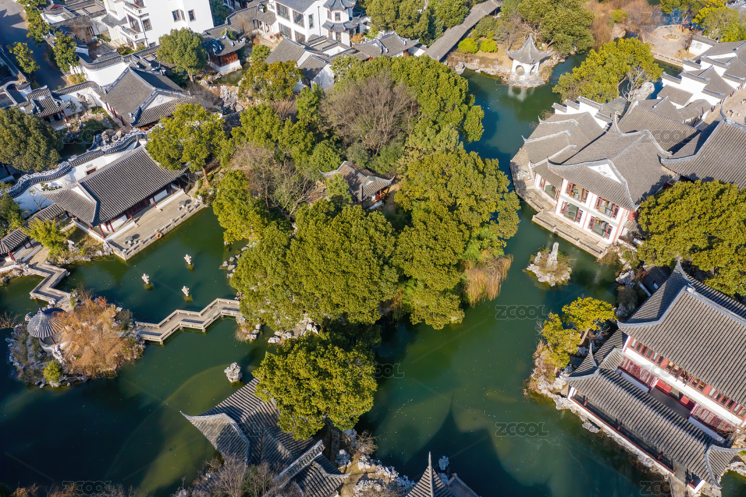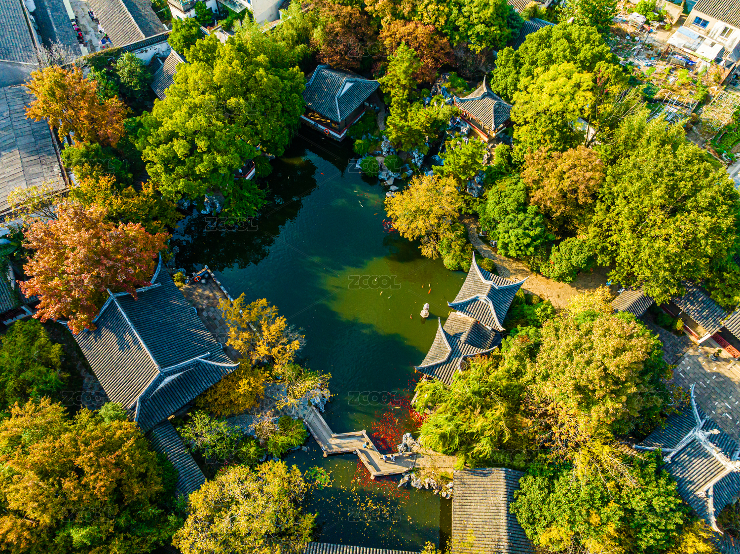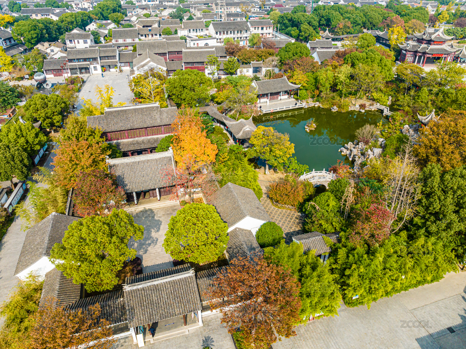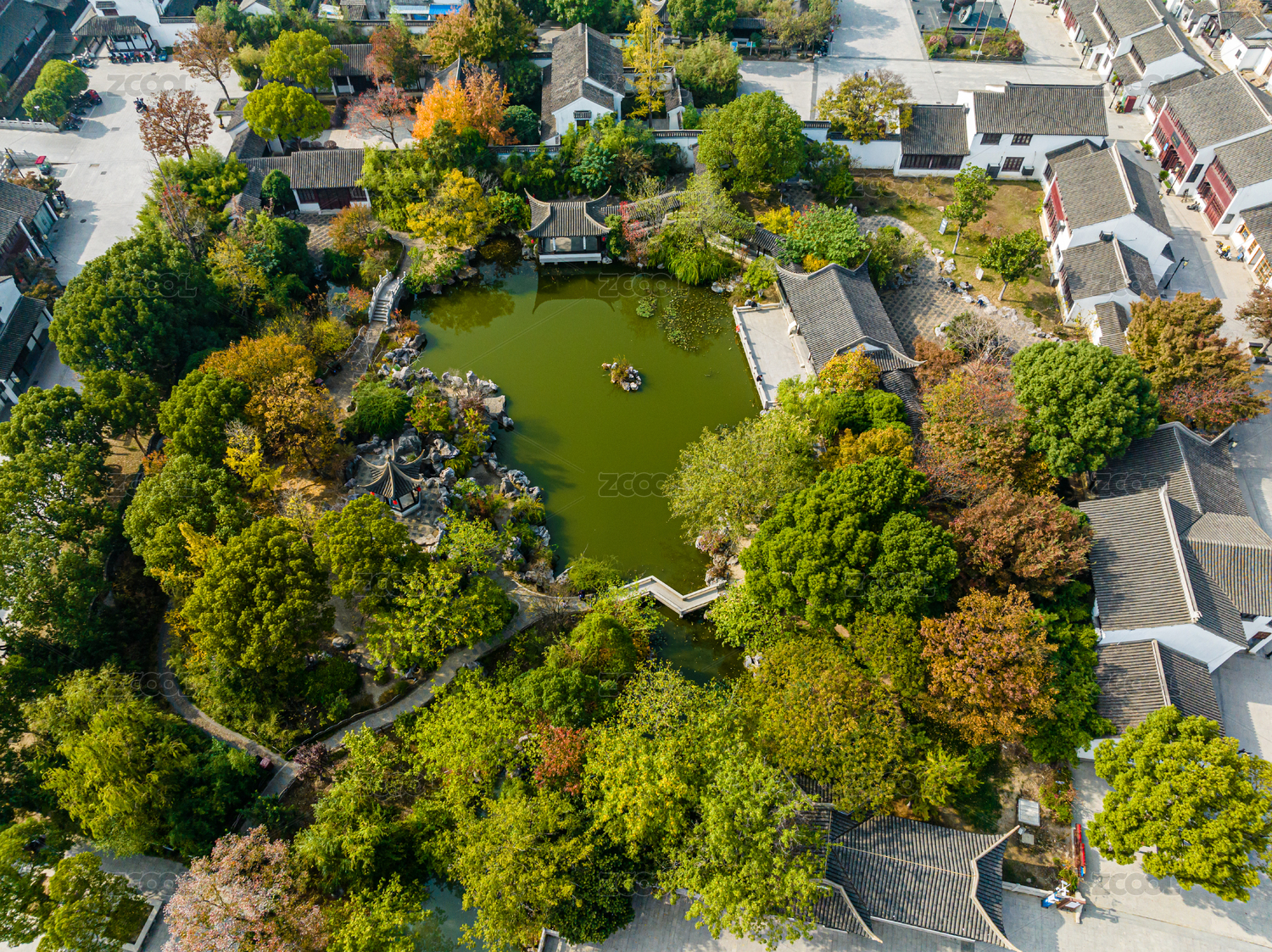 俯瞰浙江嘉兴市濮院时尚古镇江南水乡风光