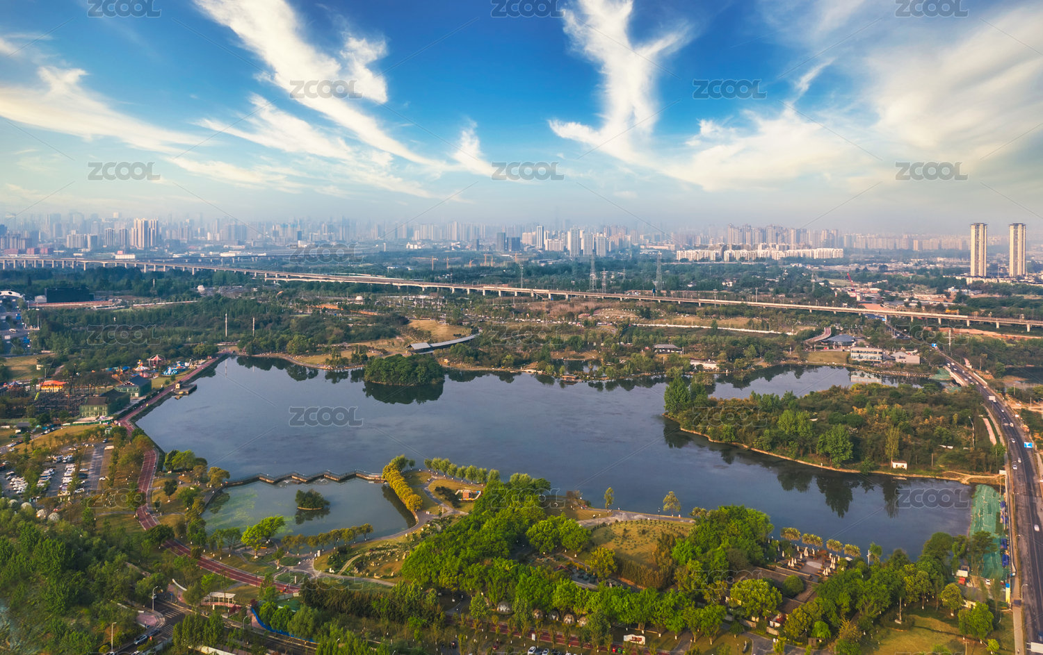 中国四川成都北湖公园全景航拍图