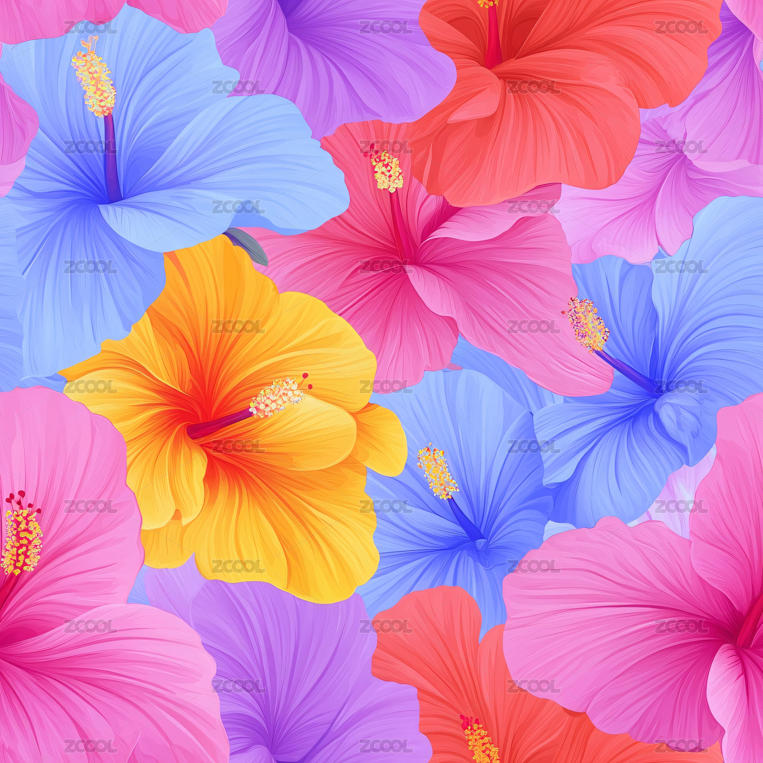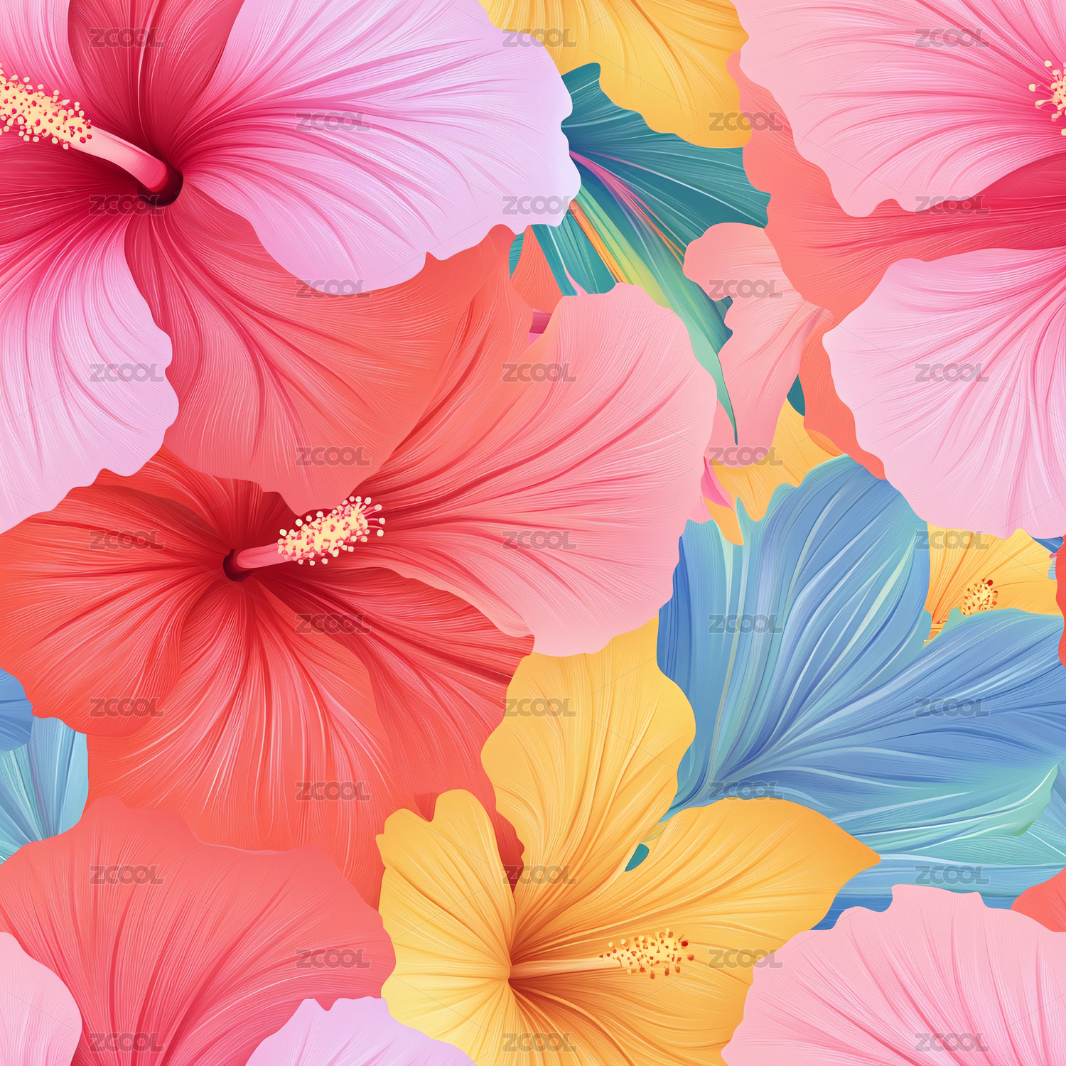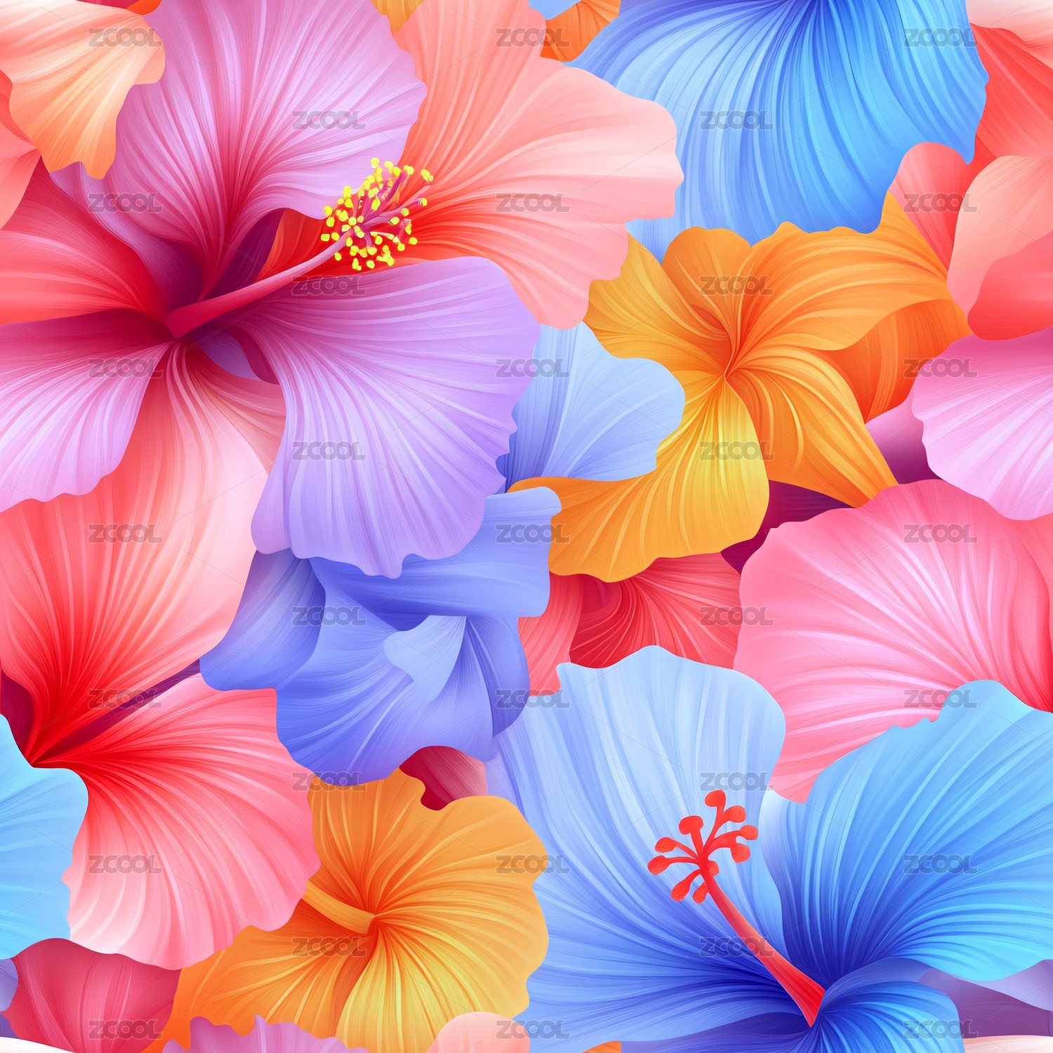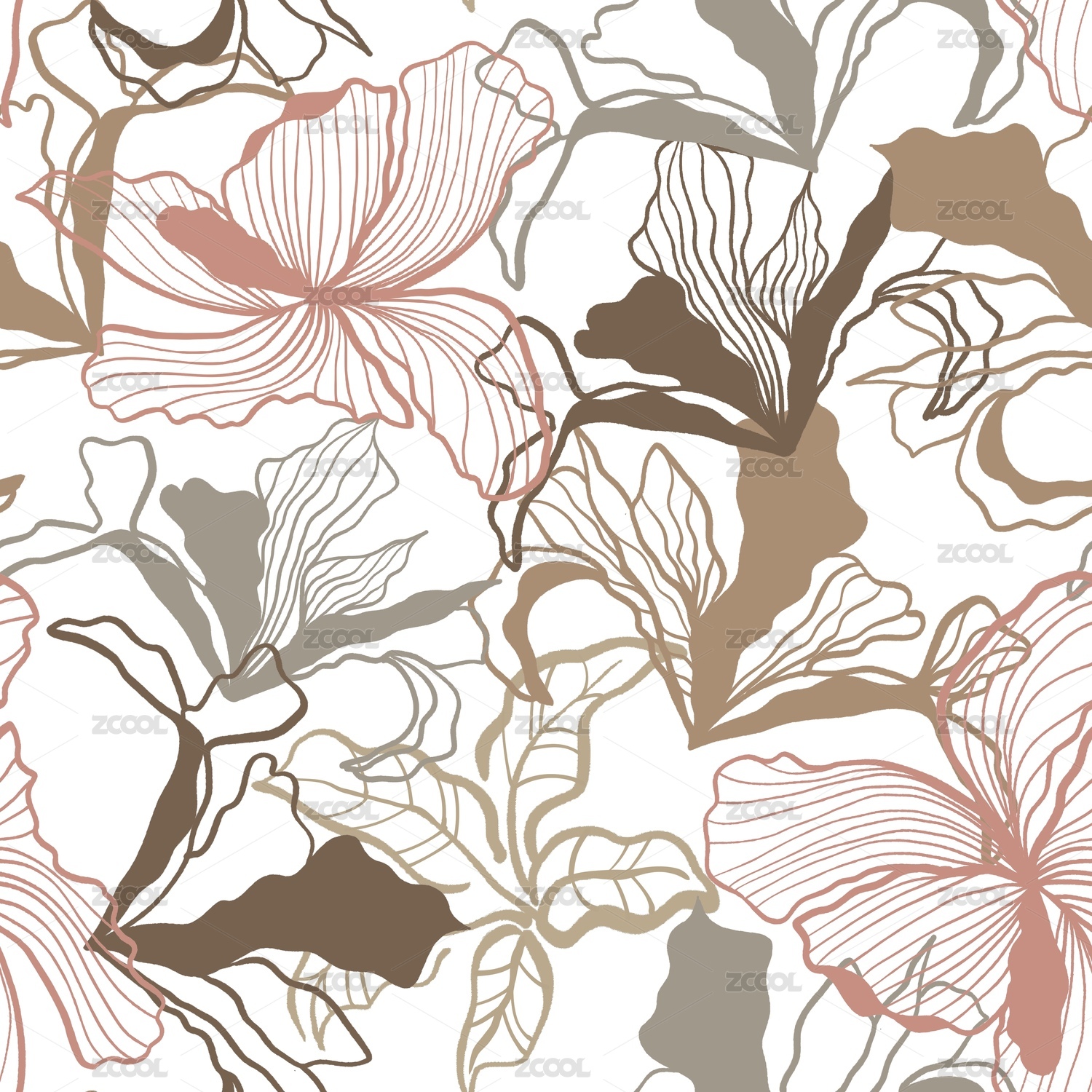 彩色线条花卉重复无缝图案纺织品装饰背景