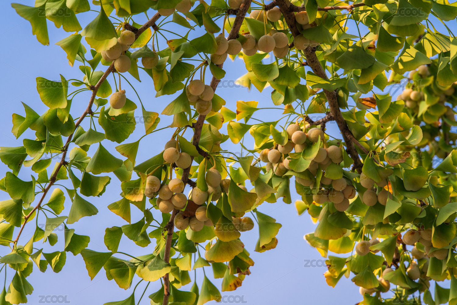枝繁叶茂的银杏果实