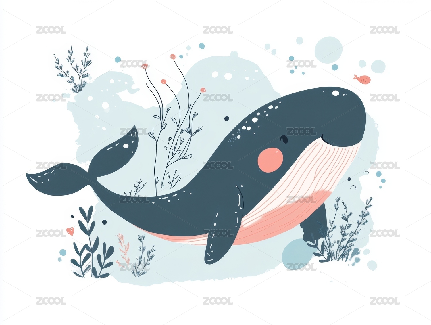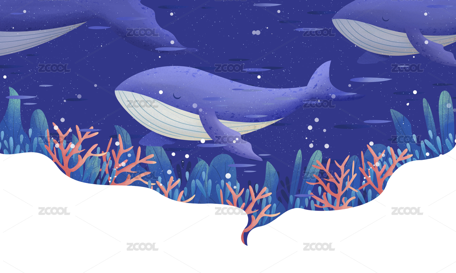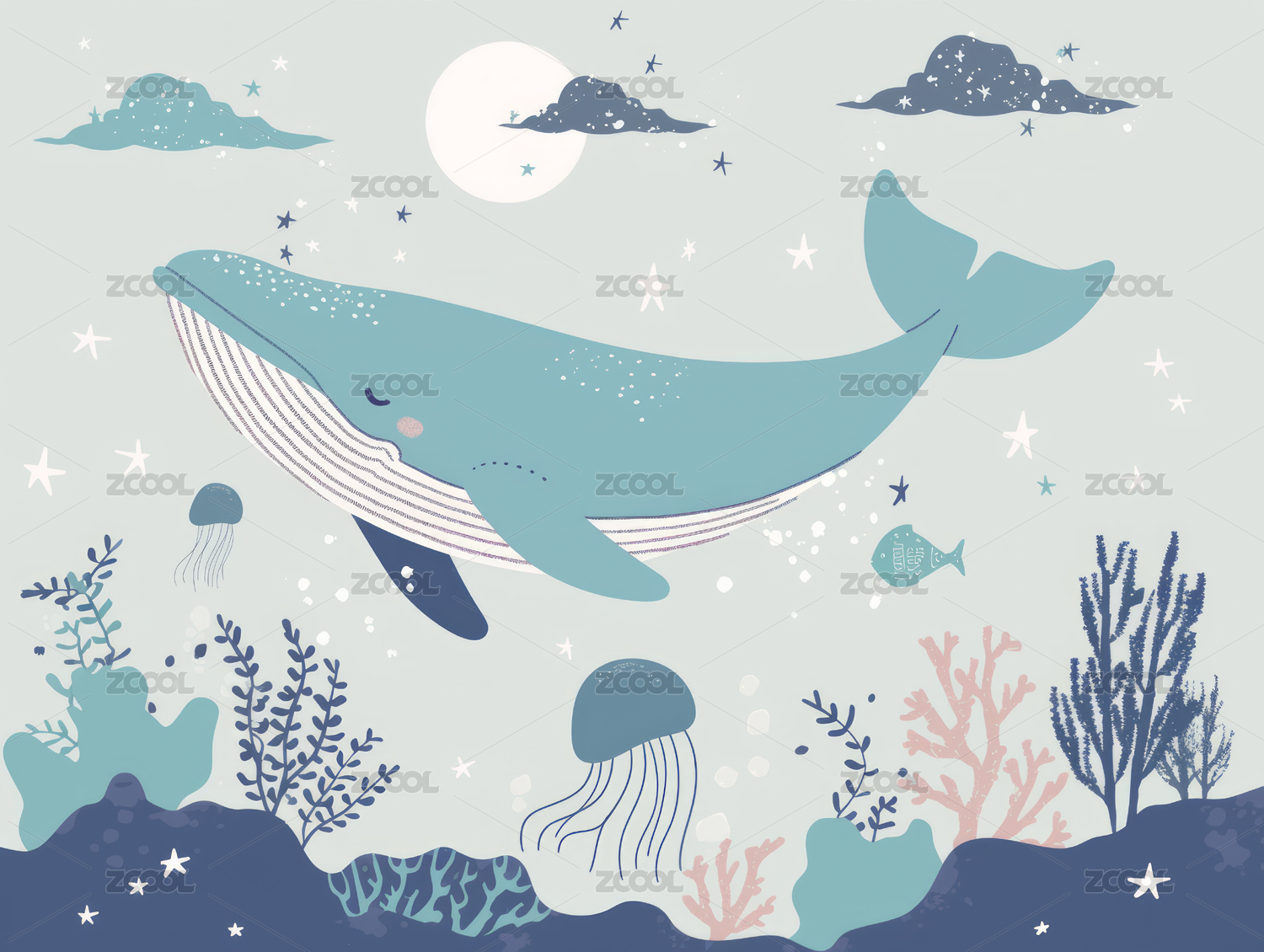 鲸,鱼类,水母,海洋生命,艺术,海洋,插画,蓝色,花,动物