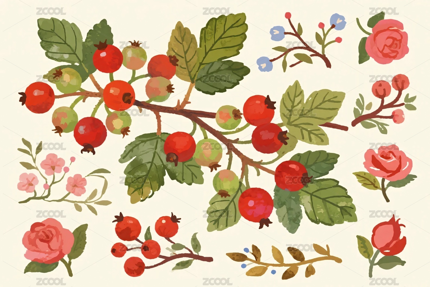 水果,插画,食品,美味,水彩画,食欲,植物,果实,叶子,孤立