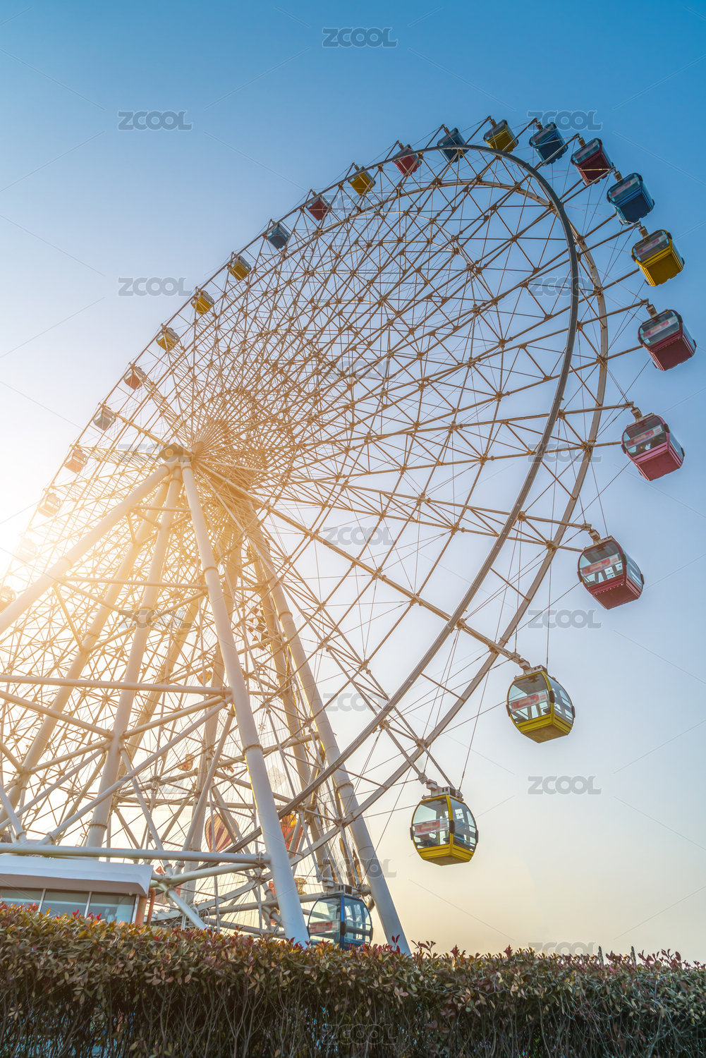蓝天白云夕阳下的摩天轮