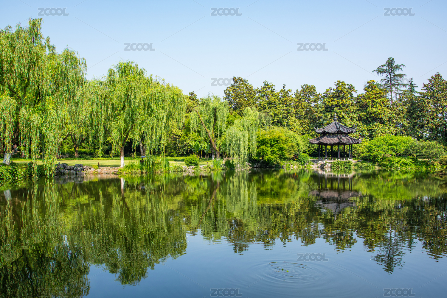 浙江杭州西湖园林水榭风光