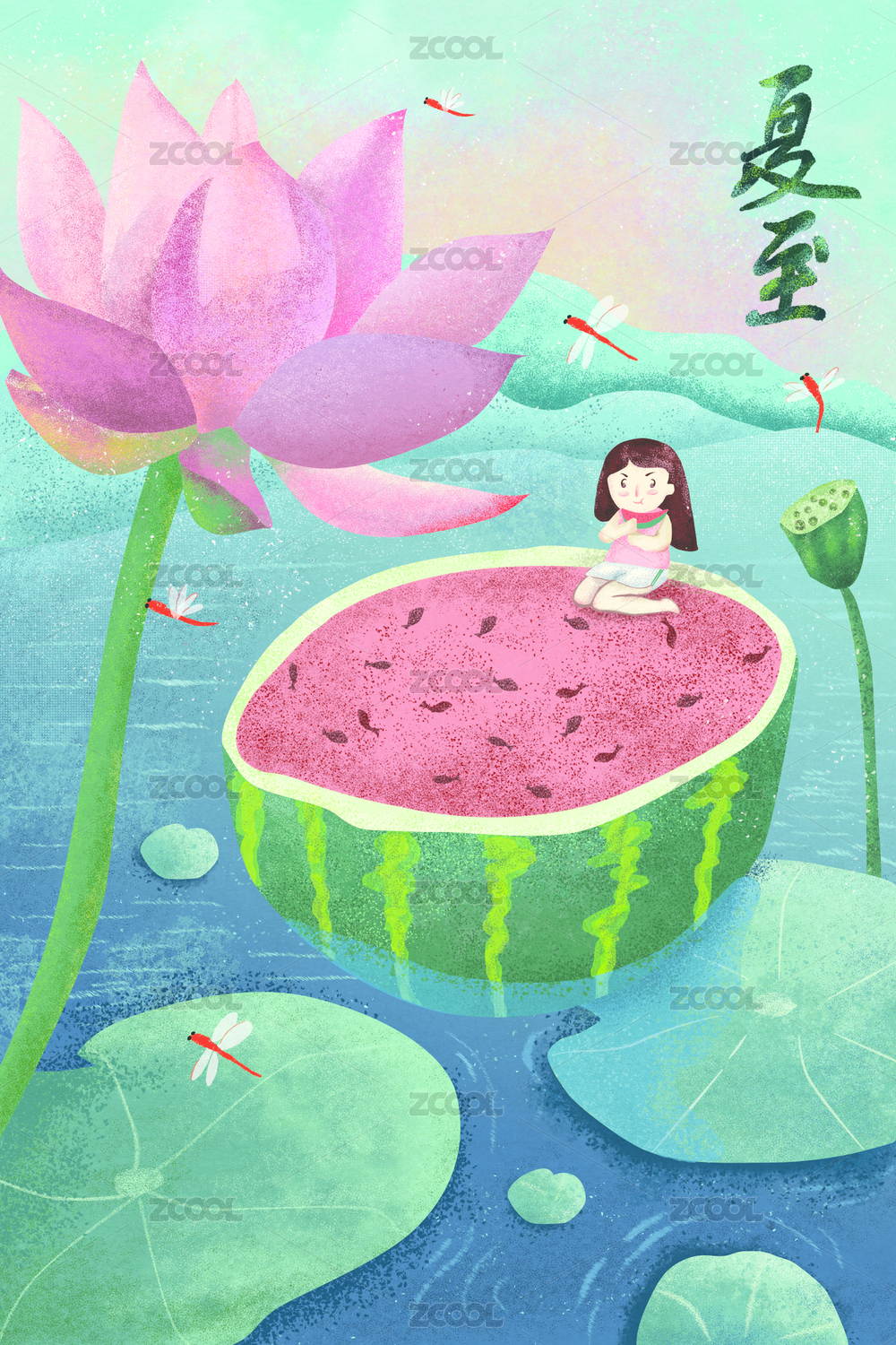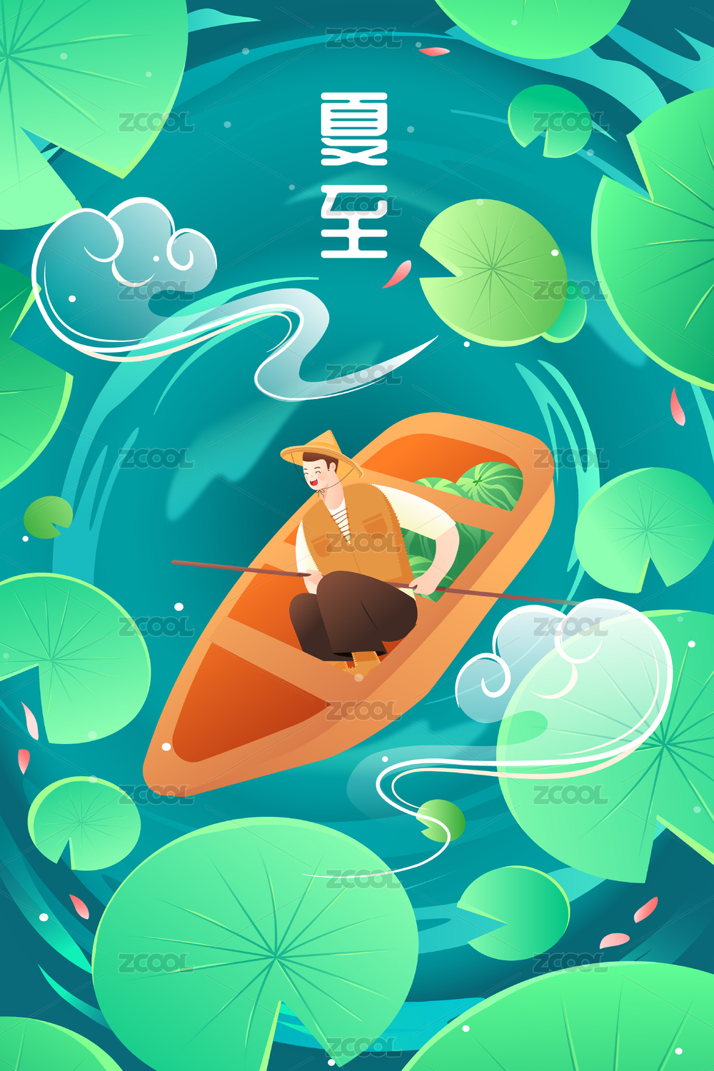 夏季夏至,池塘荷叶荷梗莲花莲藕24节气,二十四节气,