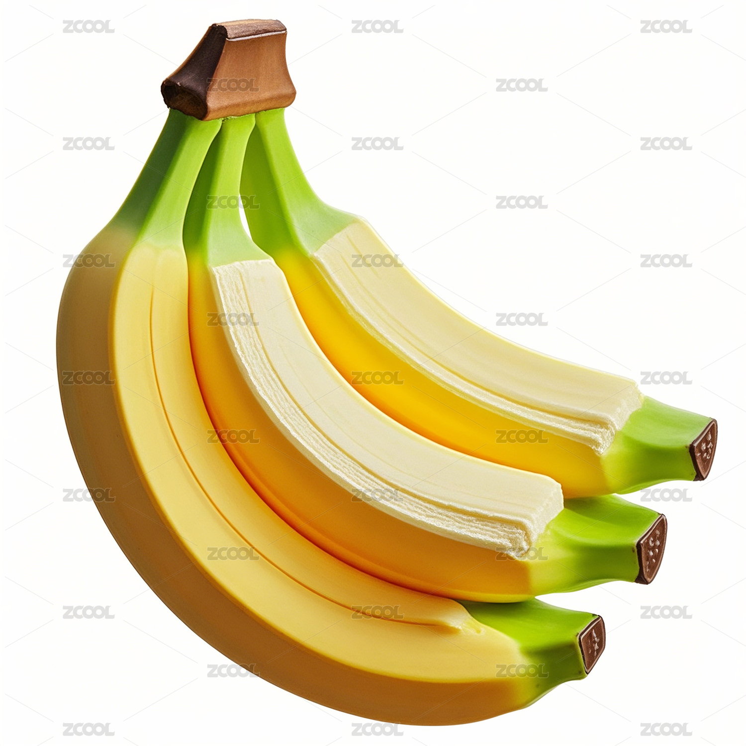 白色背景下拨开剥开皮的新鲜精选香蕉创意灵感摆拍