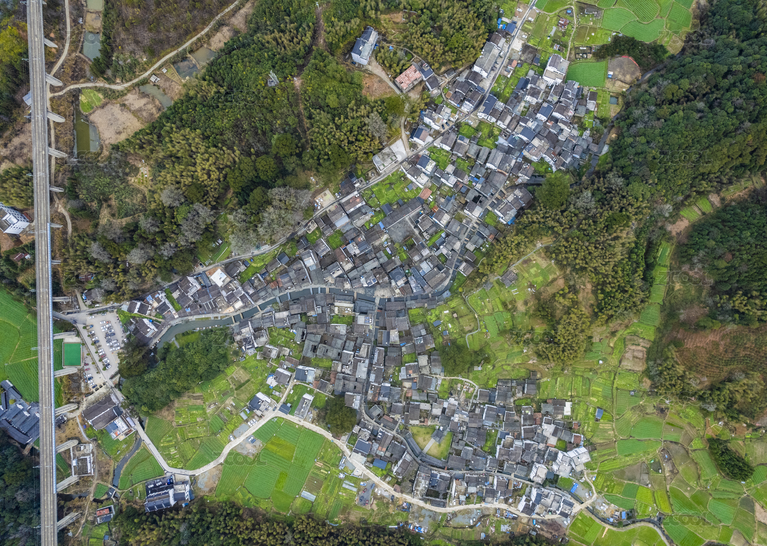 江西省上饶市婺源县菊径村正上方航拍视角