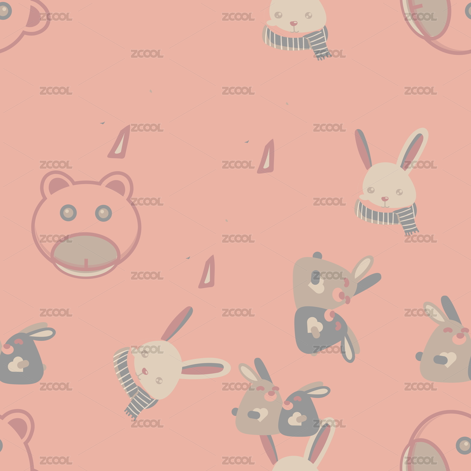 无缝图案插画卡哇伊动物兔子