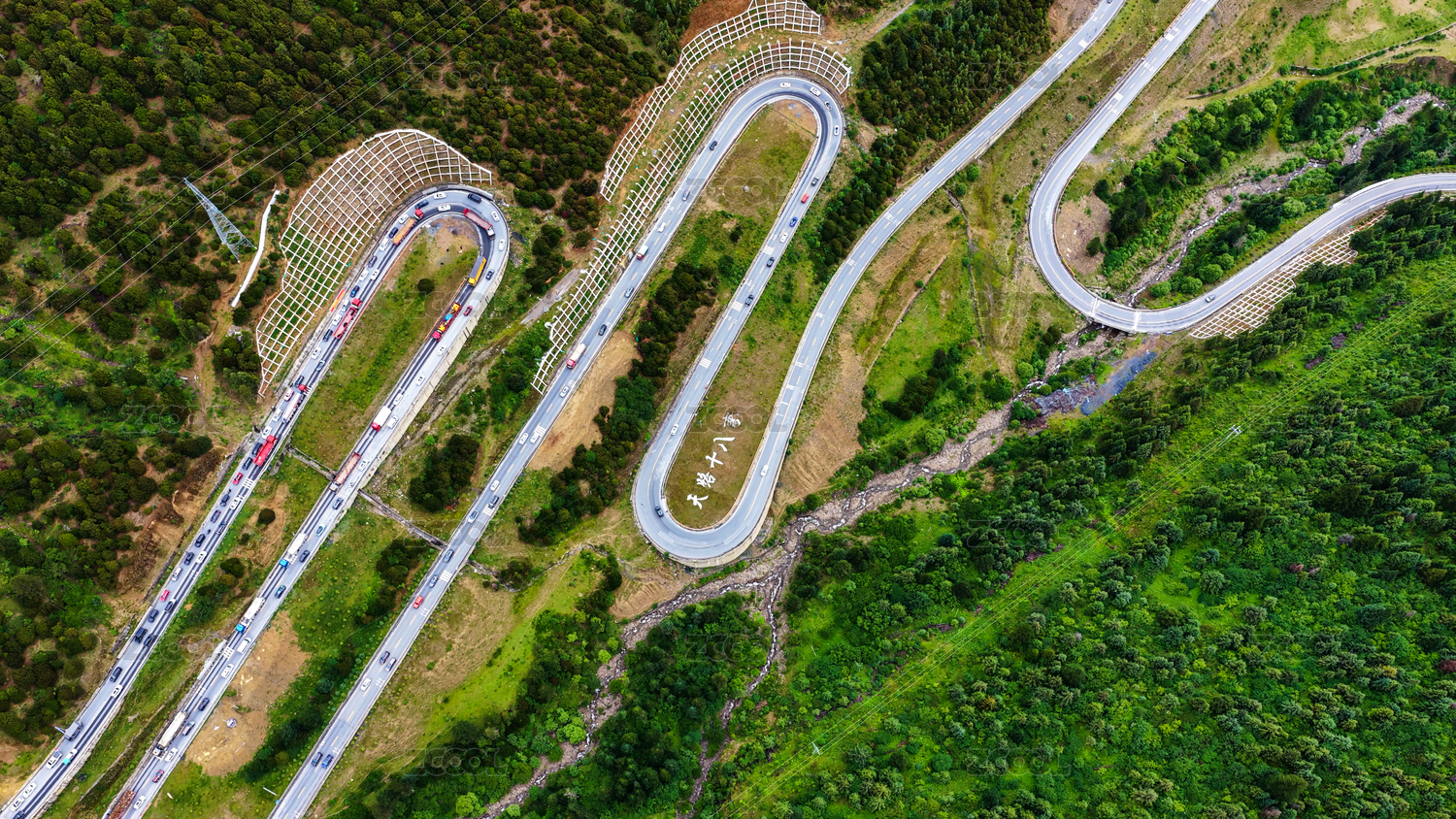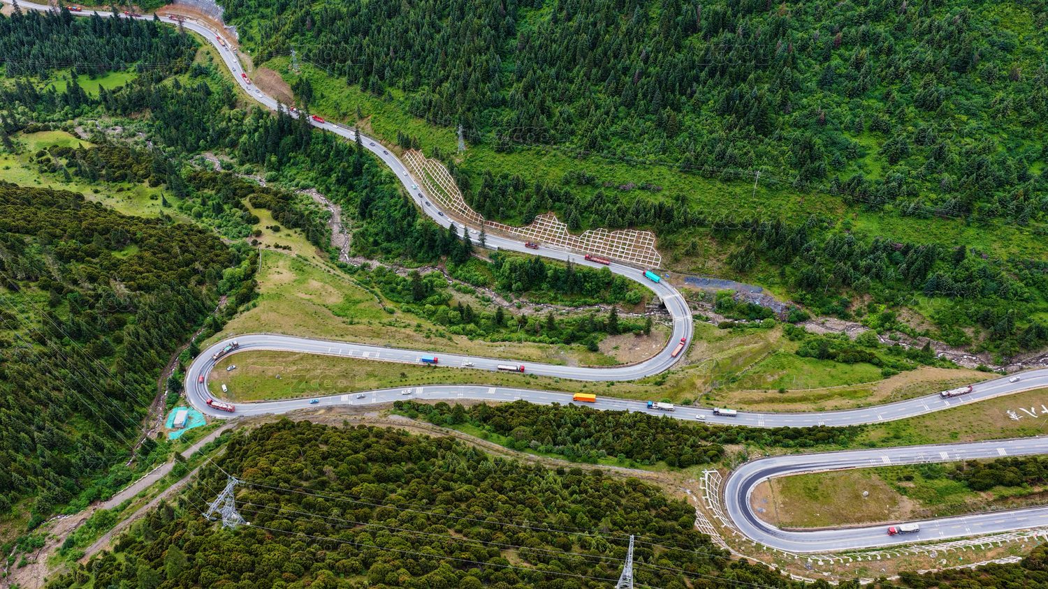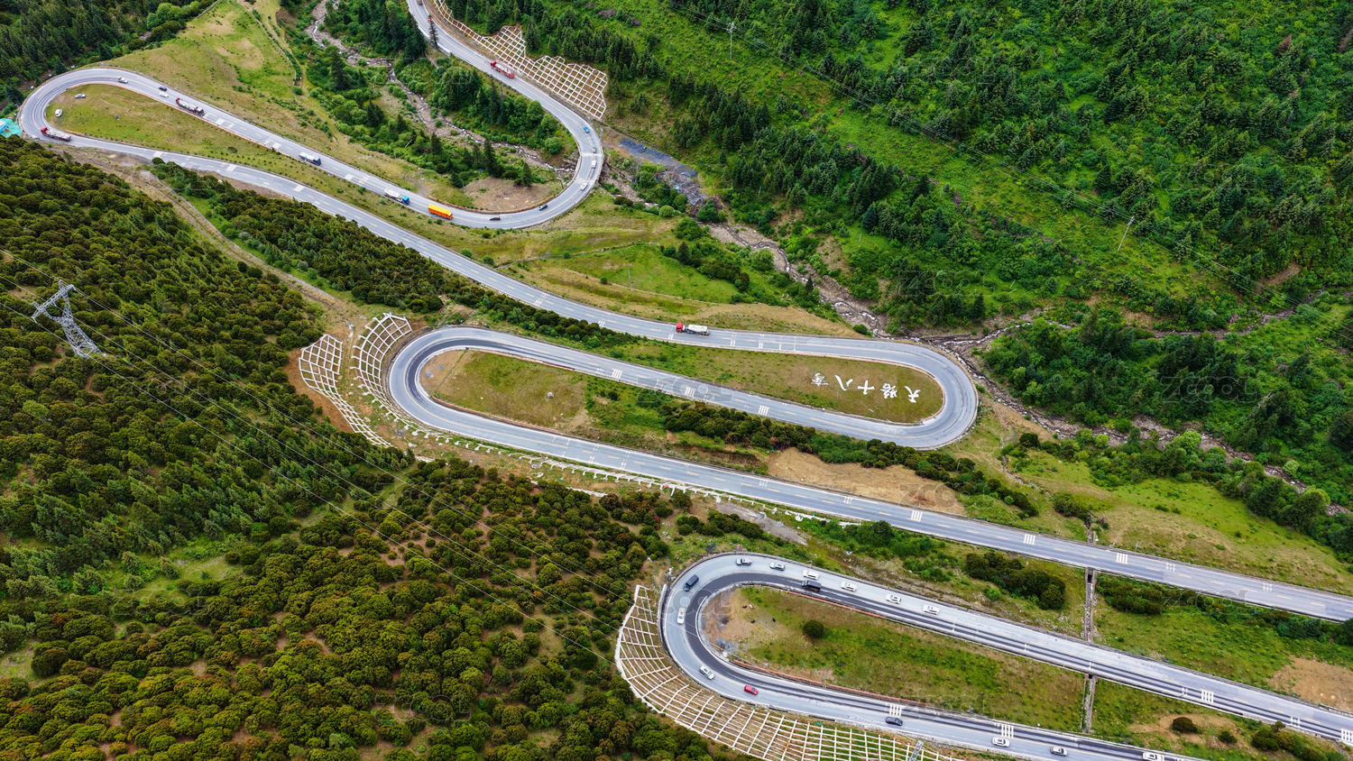 中国四川山谷中蜿蜒曲折的G318川藏线公