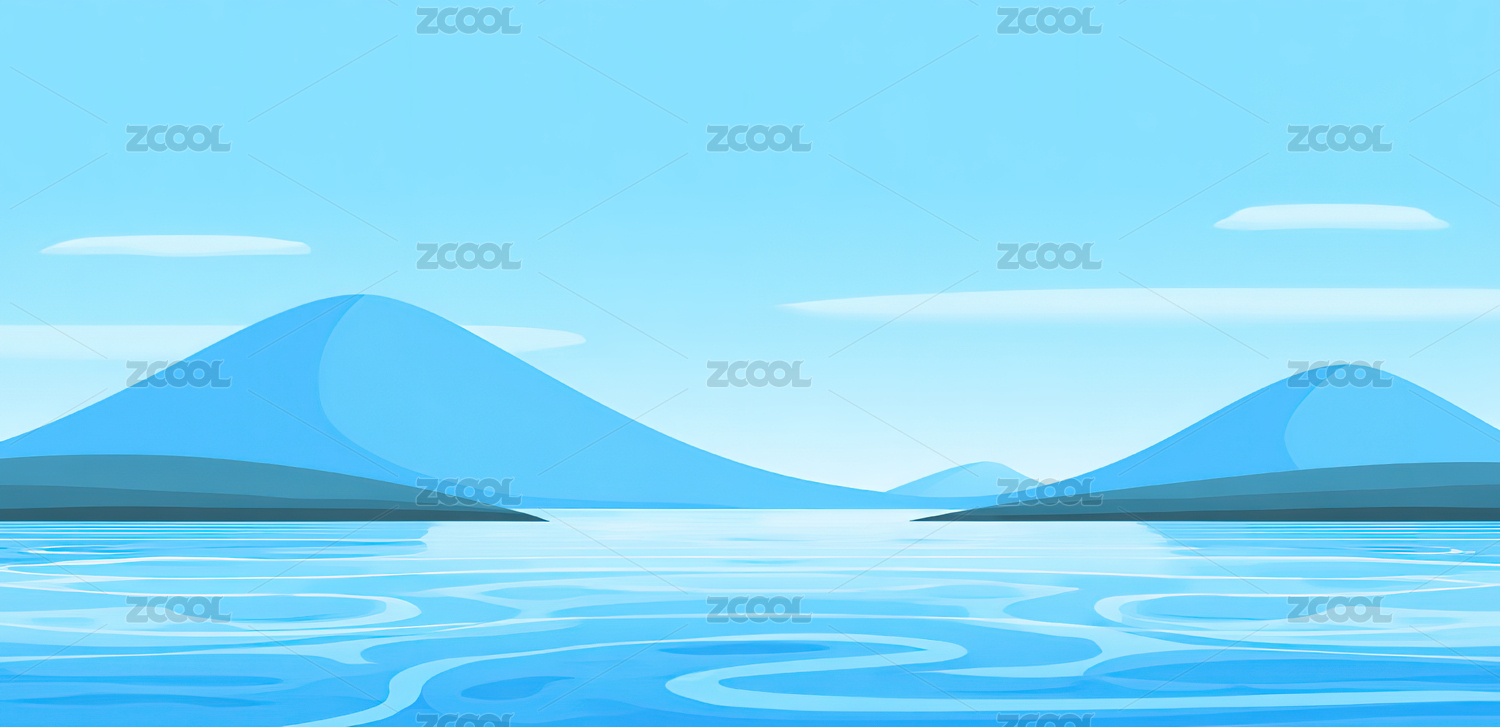蓝色平静的海洋和柔软的沙滩海岸插画背景
