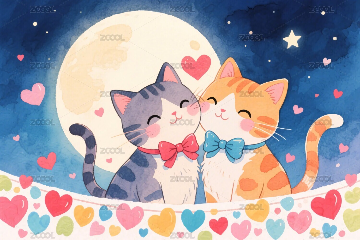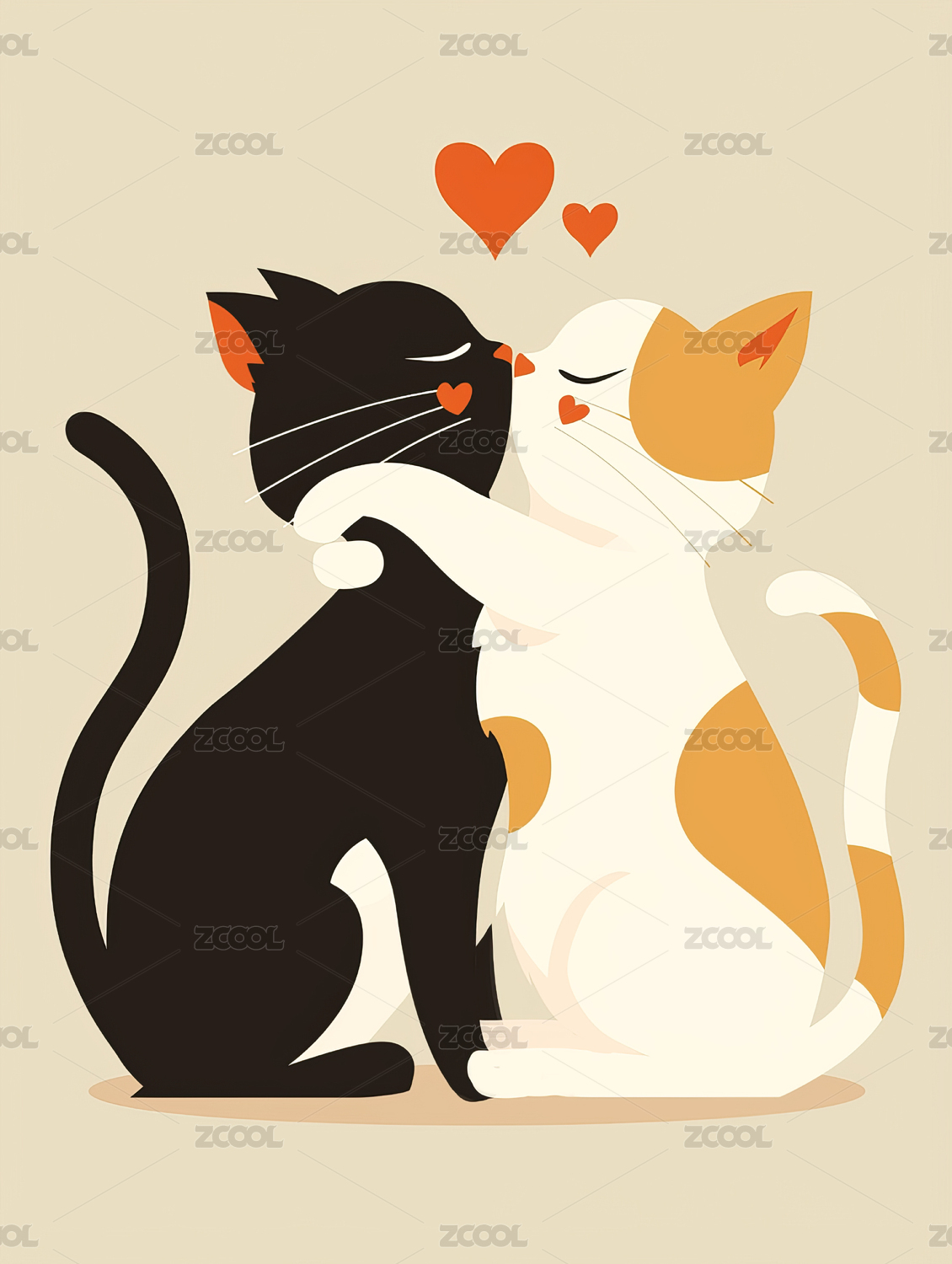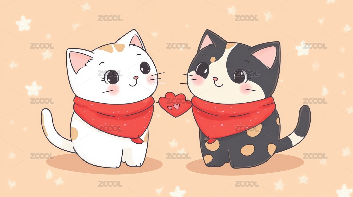 无人,可爱的,插画,设计,动物,猫,两只猫,爱情,爱心,红心