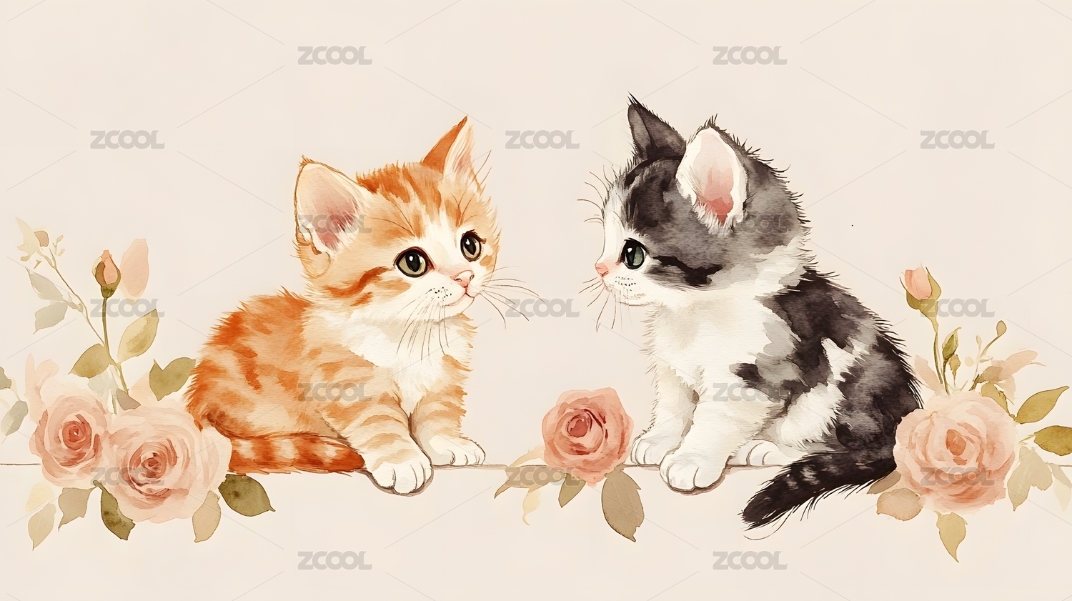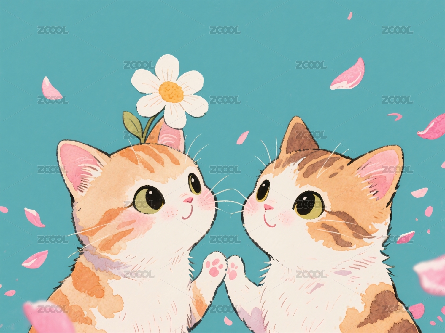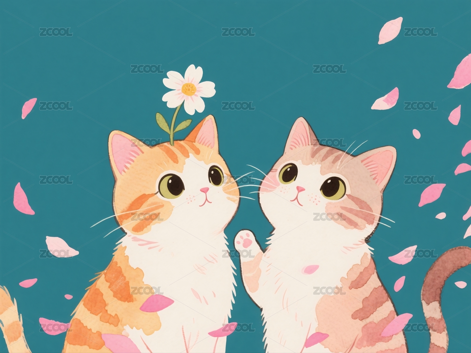 无人,可爱的,插画,设计,动物,猫,两只猫,爱情,爱心,红心