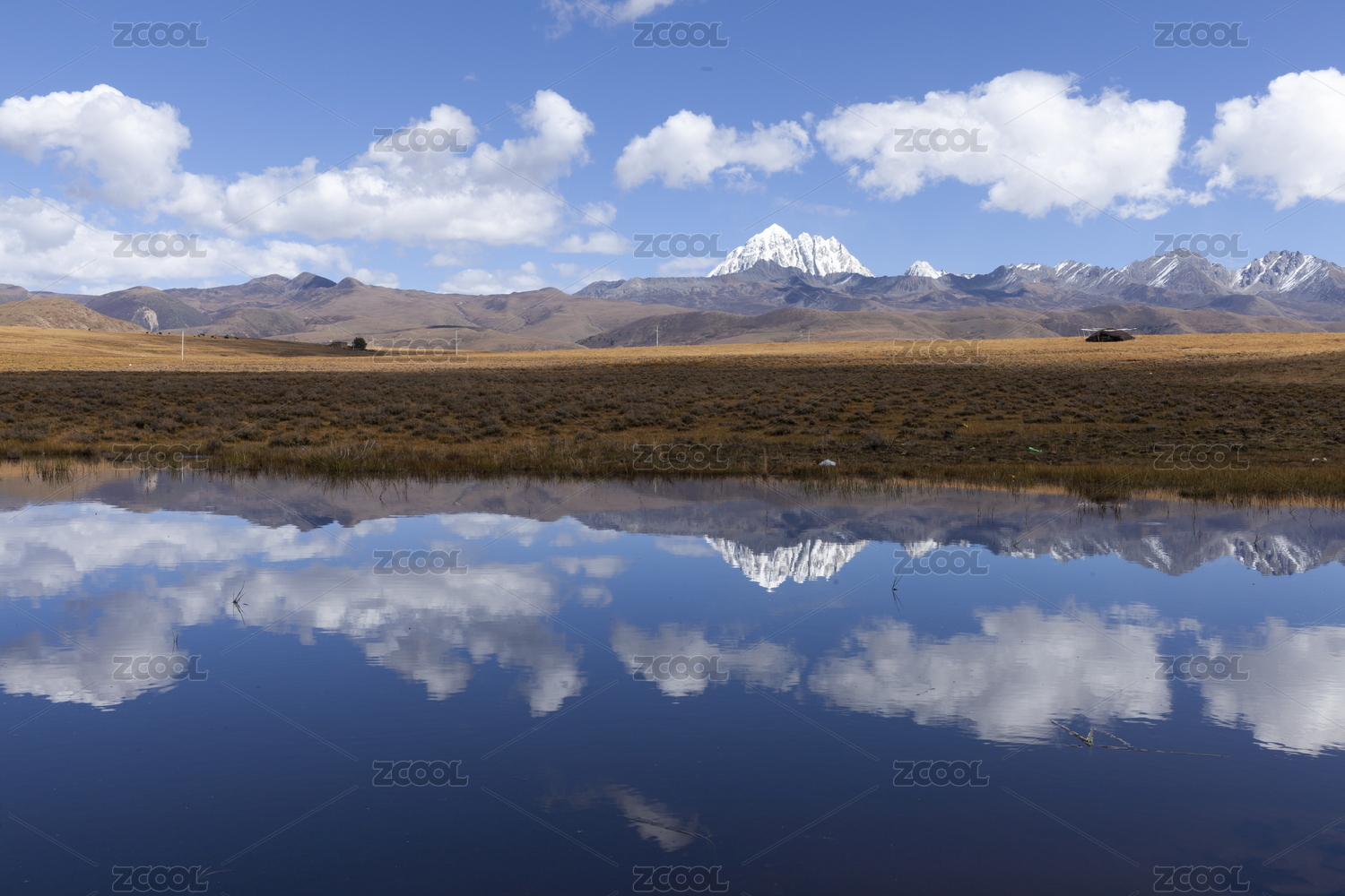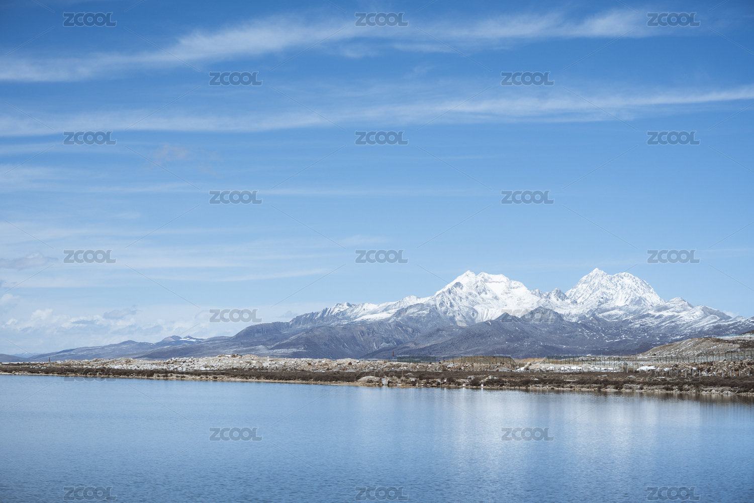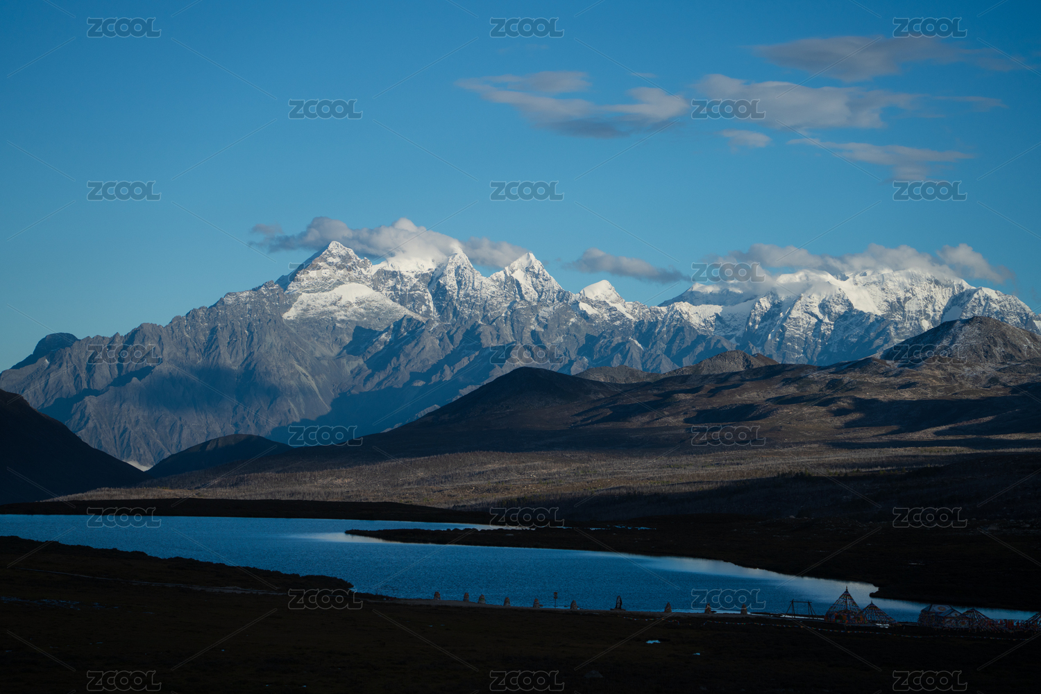 川西,斯丁措,雪山,雪山湖泊,静谧美,蓝天白云