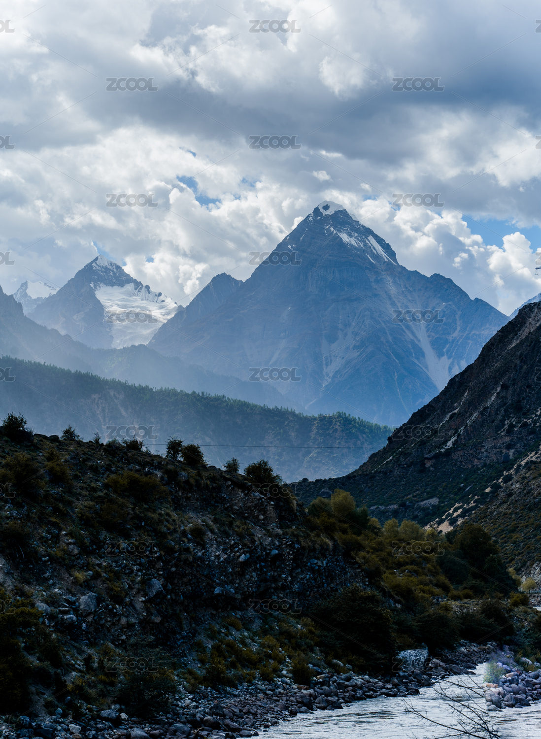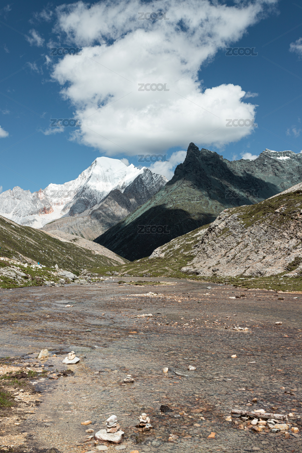 中国四川甘孜州康定市泉华滩和贡嘎山