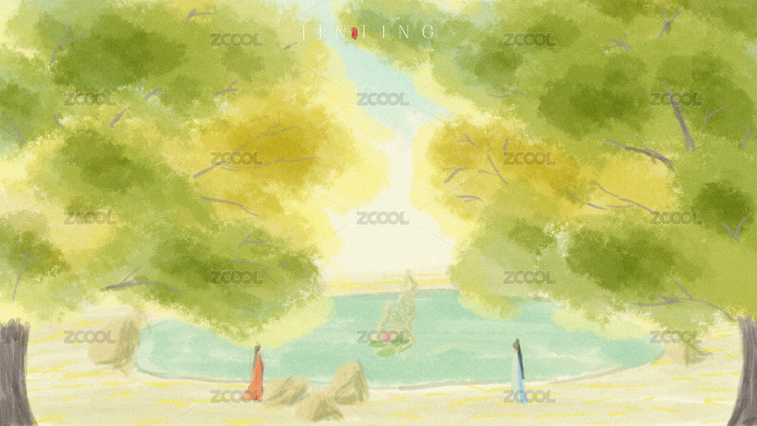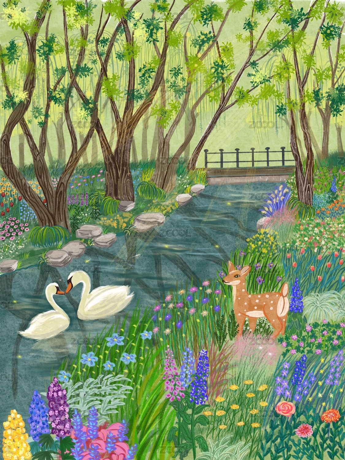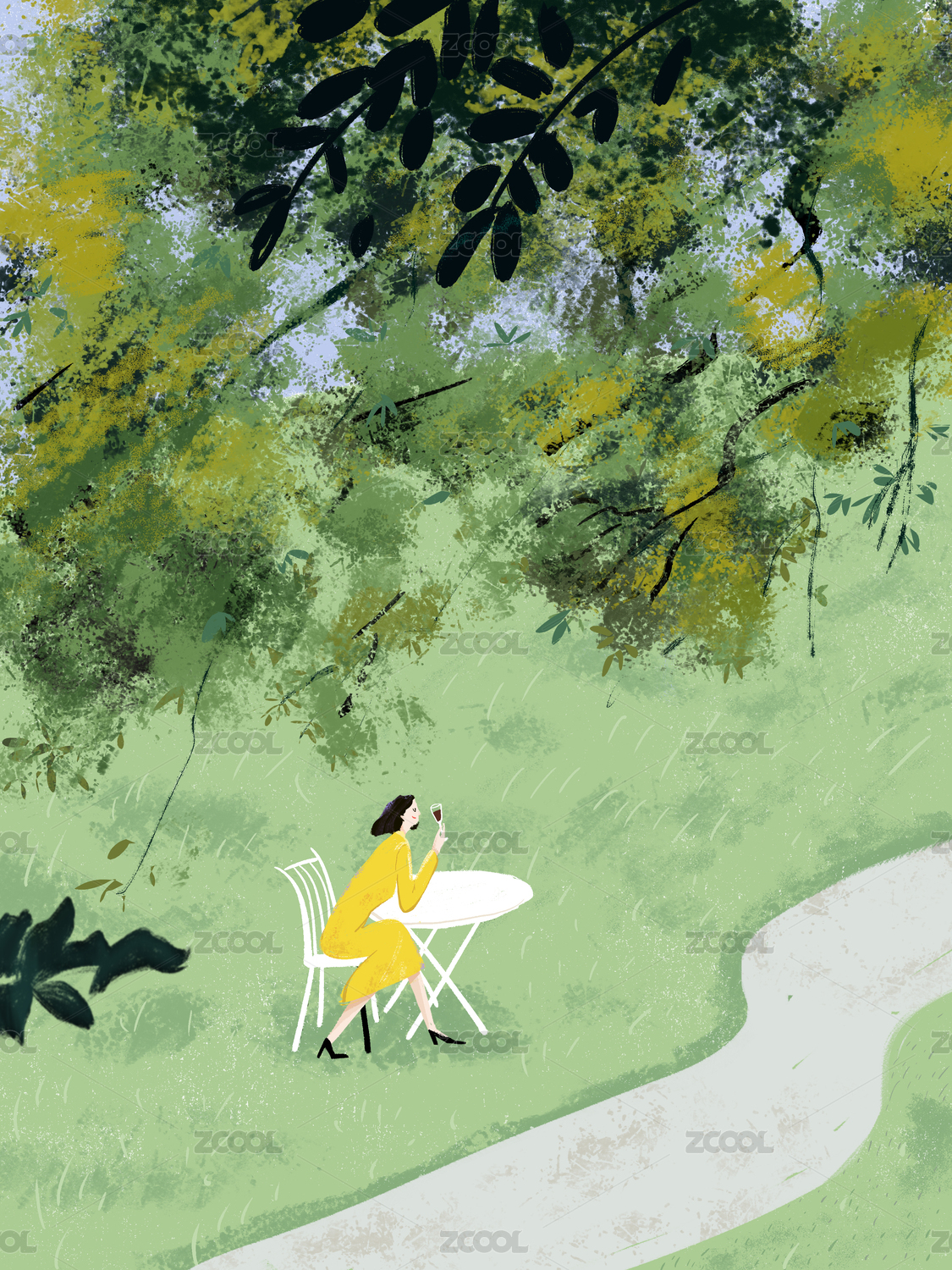 看书,户外风景,原创插画,壁纸,日历,治愈