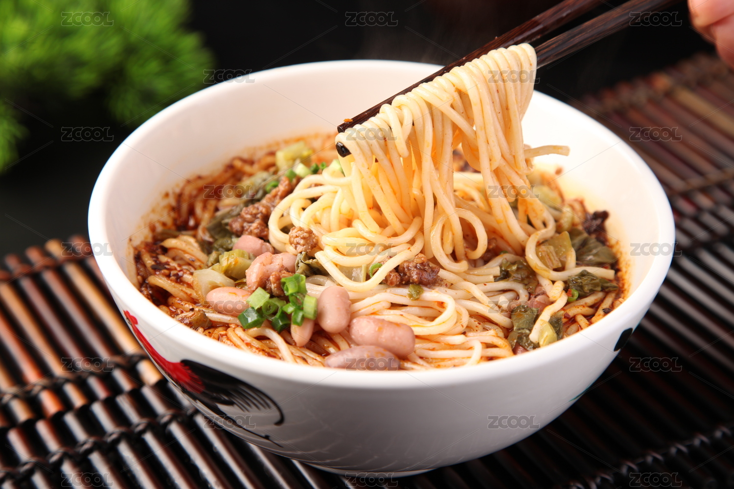 木桌上一碗香辣的重庆小面
