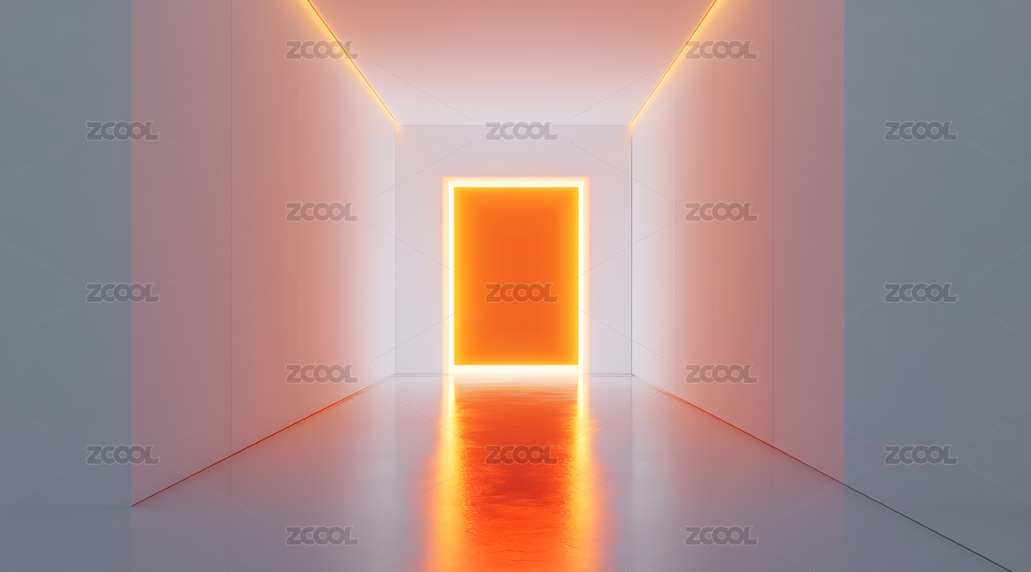 科技感通道里的橙色光影之门