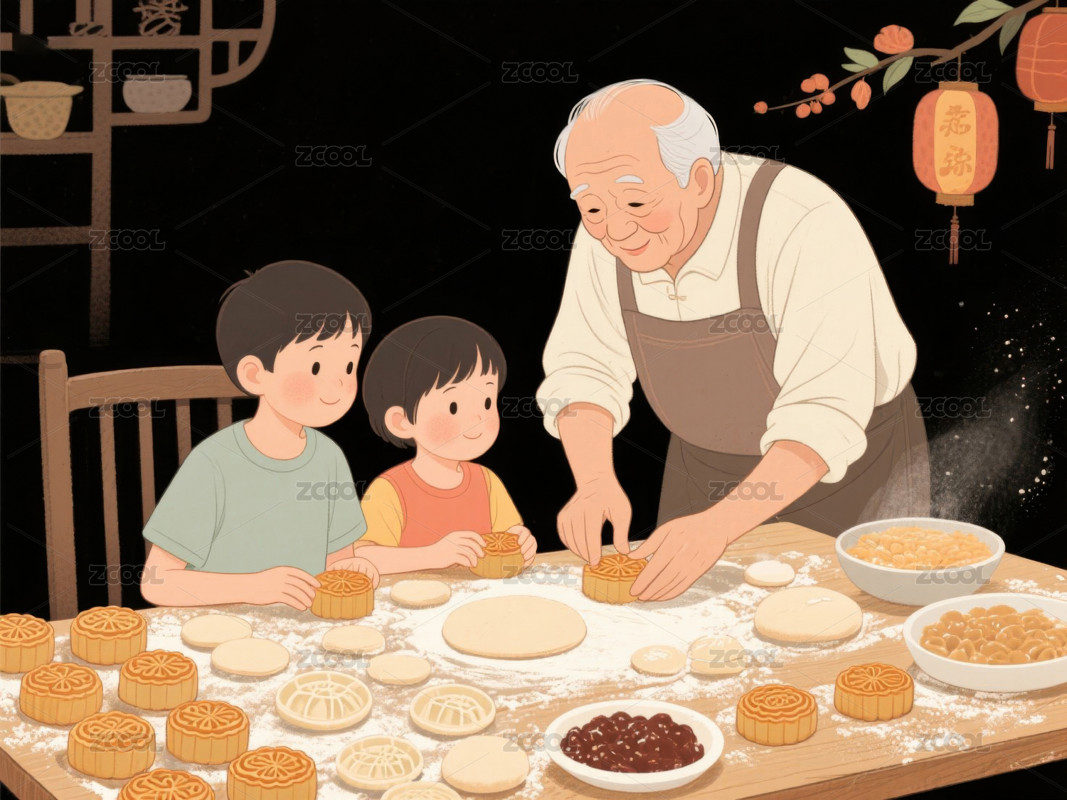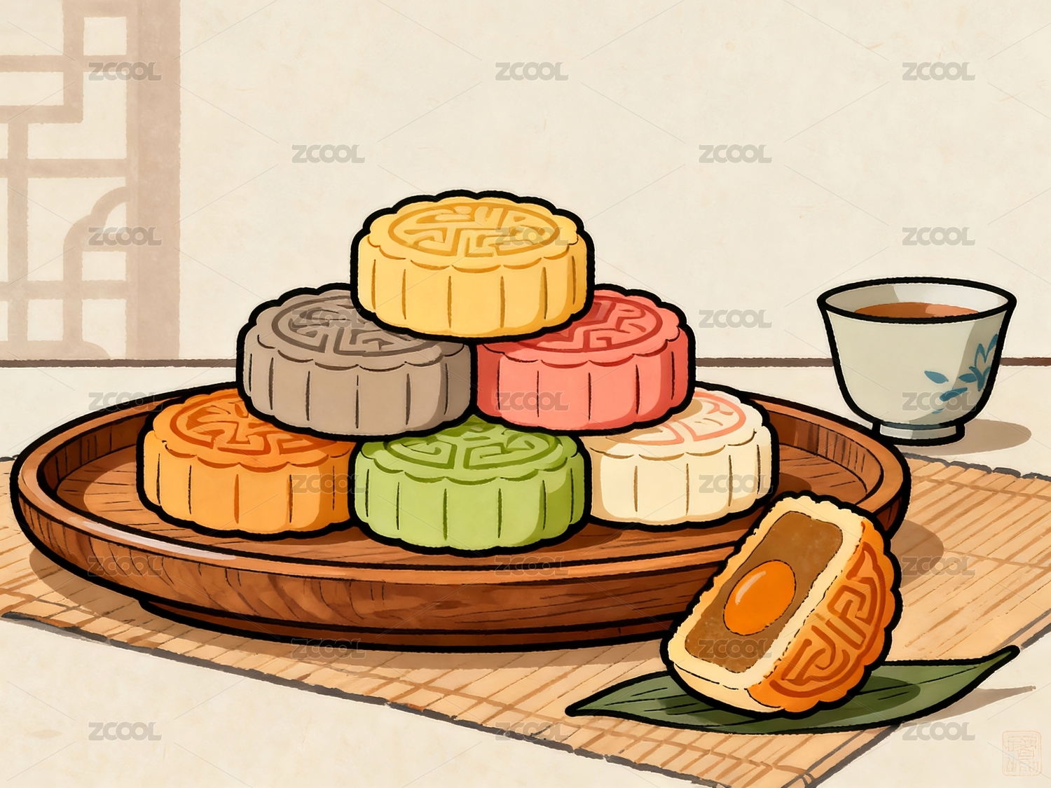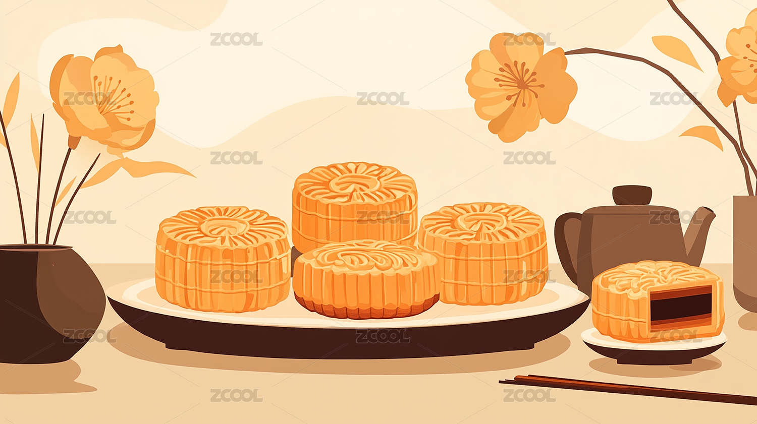 DXCZ202404,月饼,传统美食,包馅,扁平插画