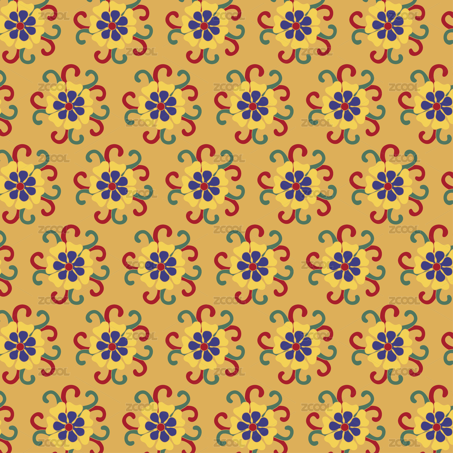 抽象几何花卉装饰无缝连接图案