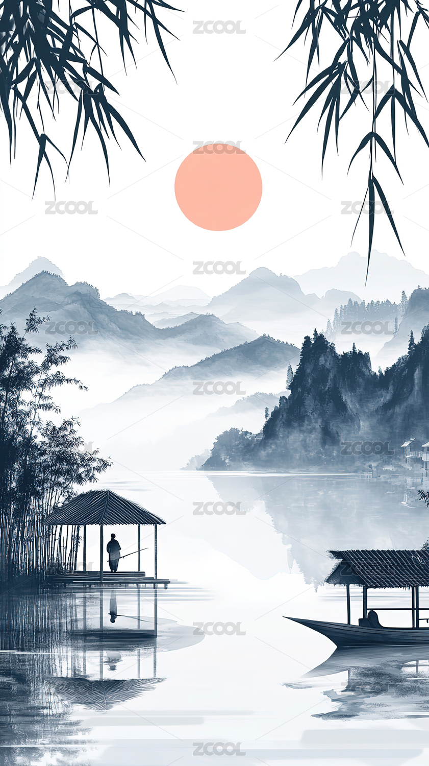 无人,中国文化,布告,展板,模板,新中式风格,风景,水,海洋,地形