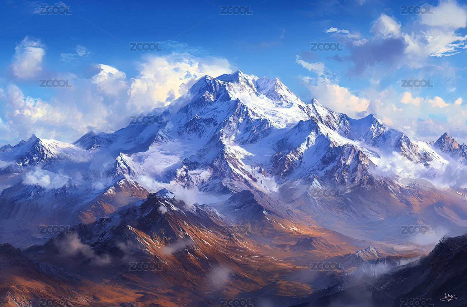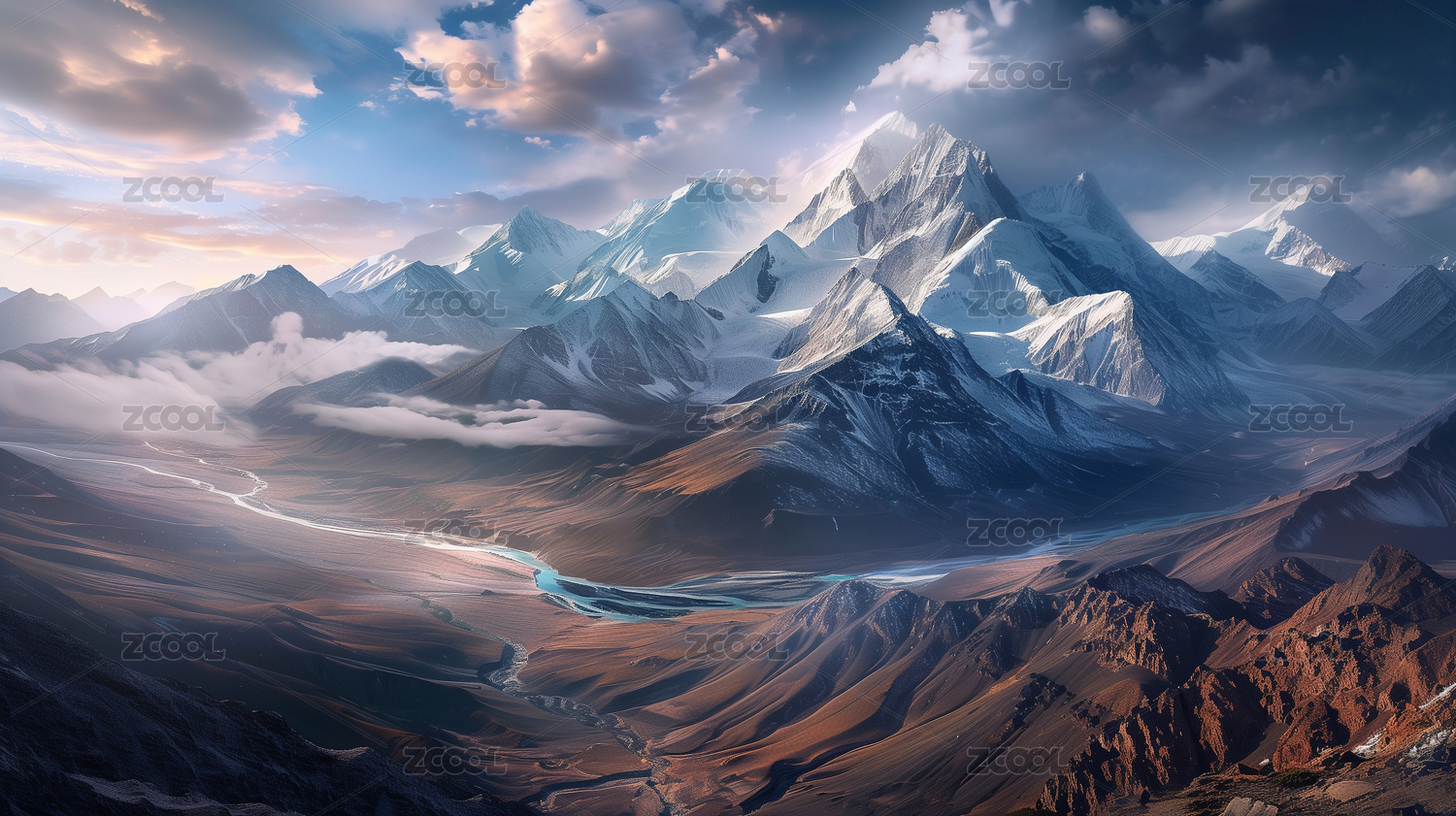 3D渲染山丘山脉高山大山山峰数字艺术插画