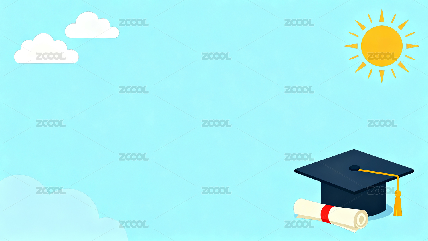 毕业帽与学位卷轴的晴空背景