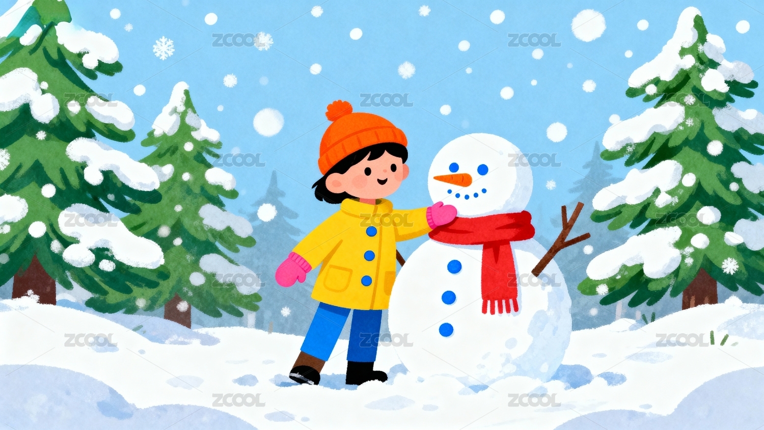 户外儿童堆雪人玩耍圣诞节冬至立冬场景插画