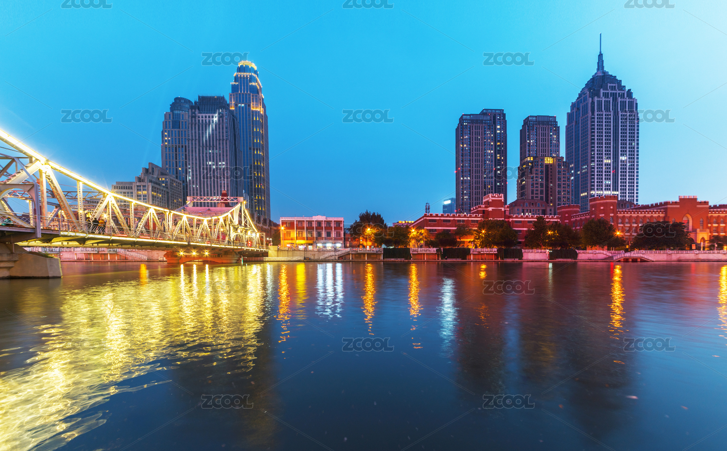 中国甘肃兰州黄河第一桥中山桥与城市夜景