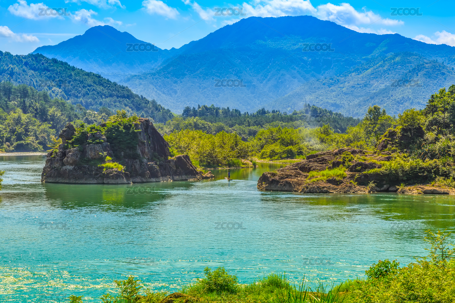 河,南溪,自然,水,温州,清晰,蓝色,绿色,背景,天空