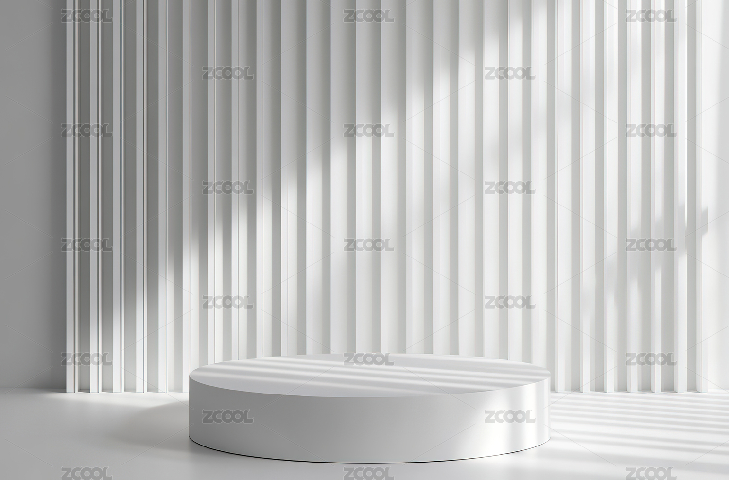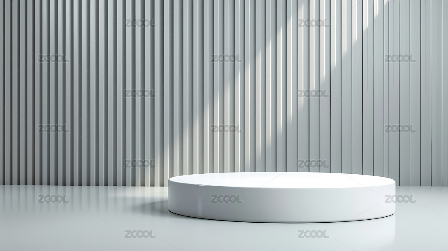 白色圆形台面与竖条纹背景