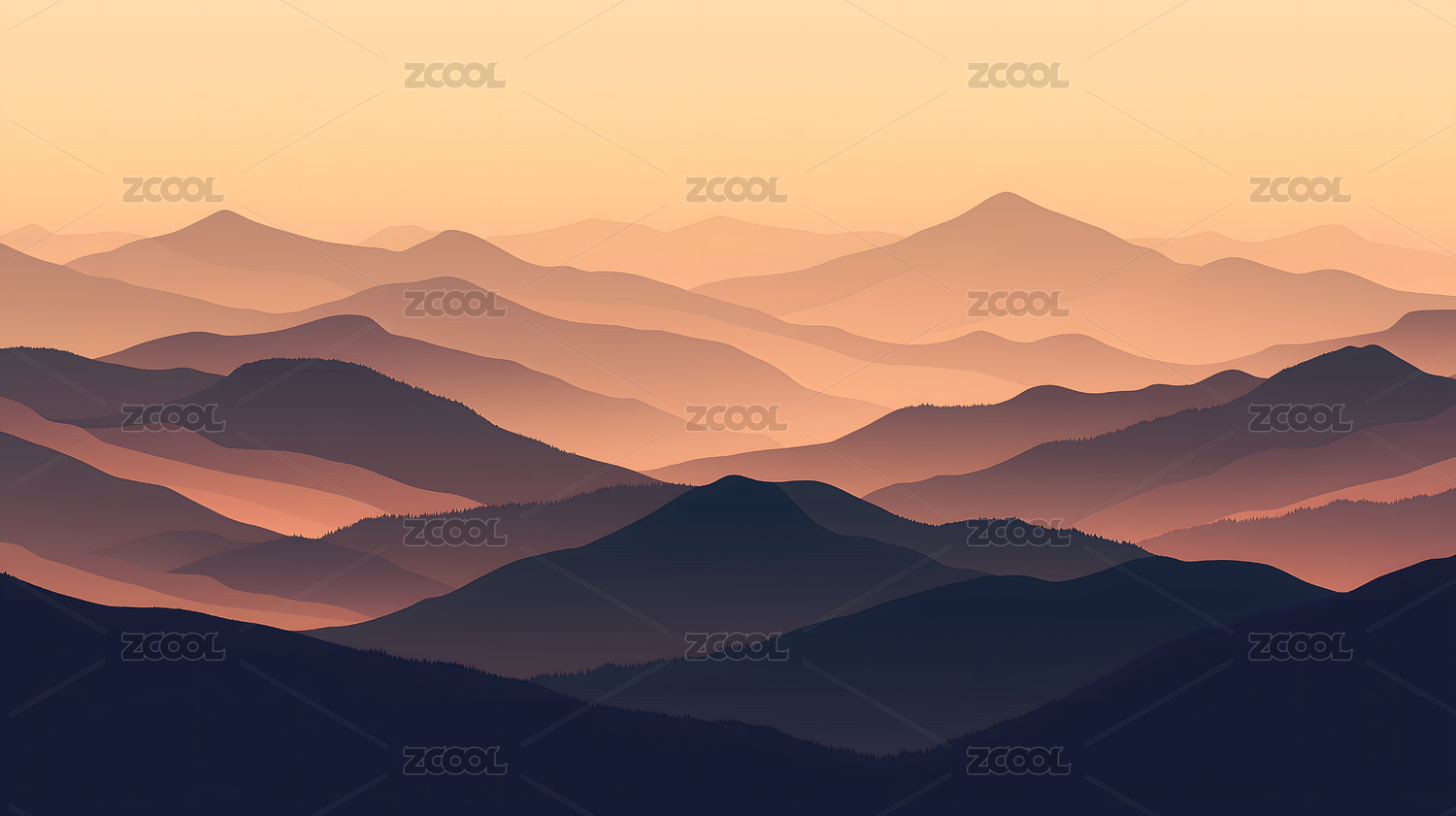 渐变色彩的山峦层叠景观
