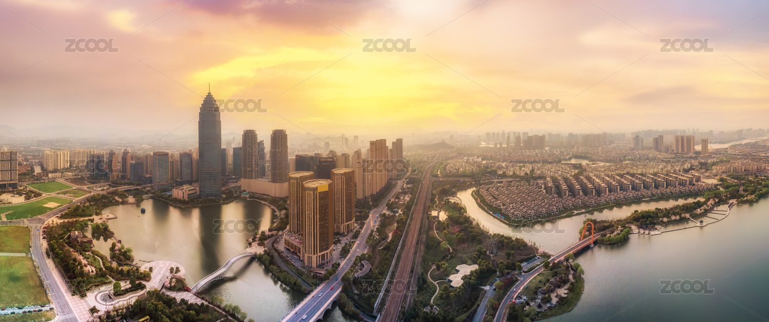 落日余晖下的上虞城市风光