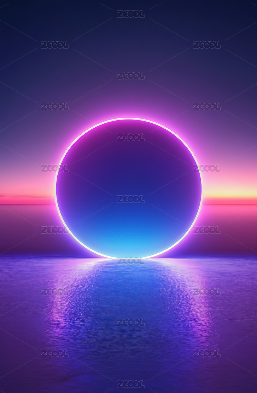 不同几何形状的五彩斑斓的舞台霓虹灯背景素材