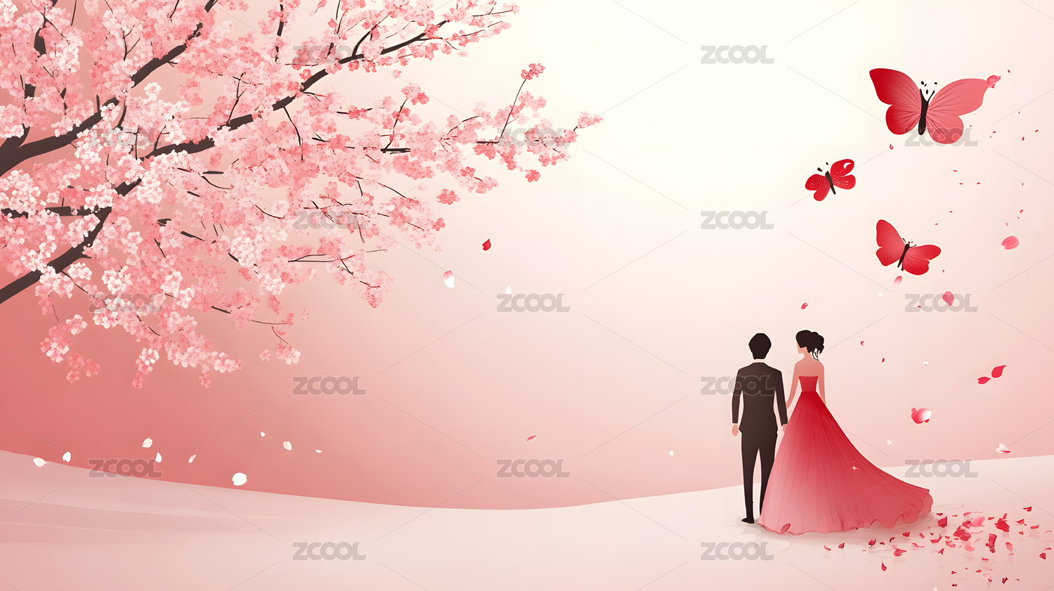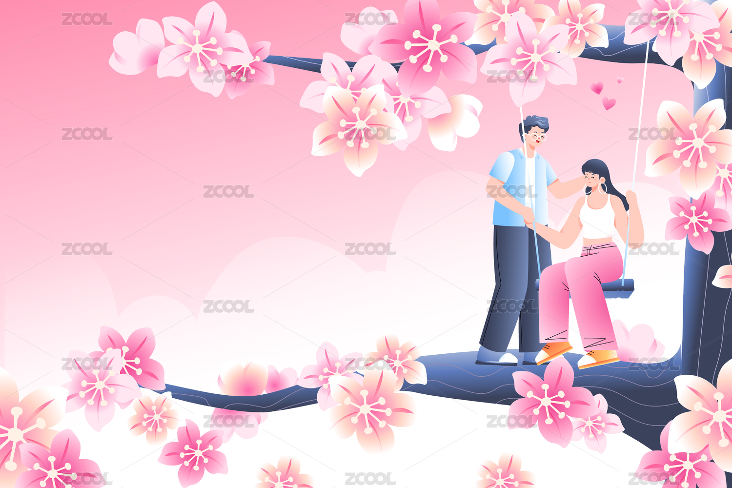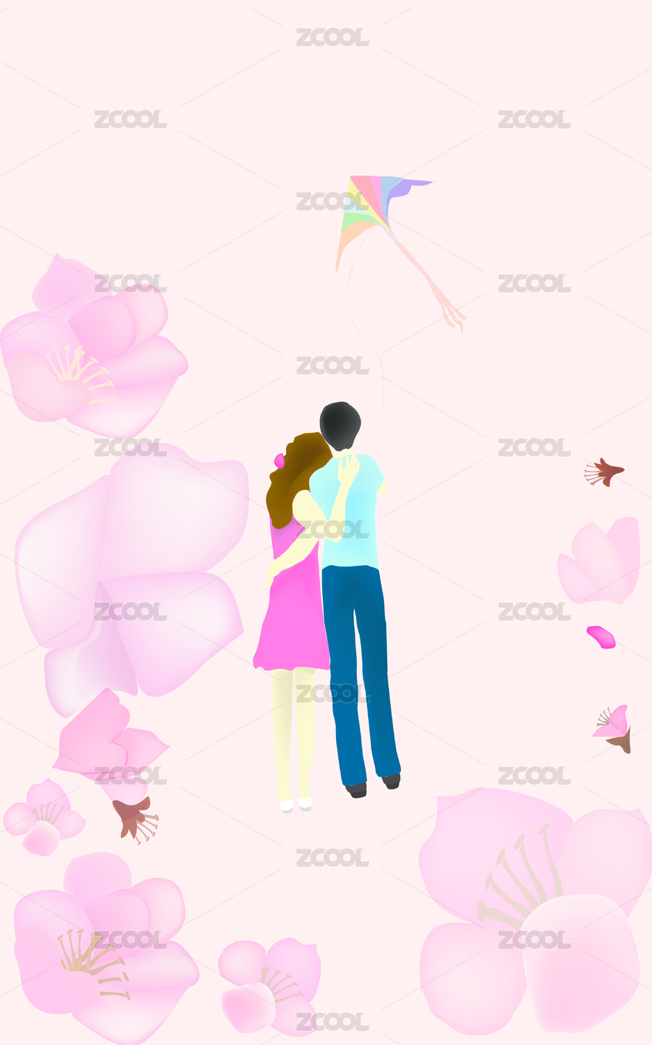 情侣,爱人,爱情,清明,放风筝,春天,桃花,粉色,拥抱,踏青