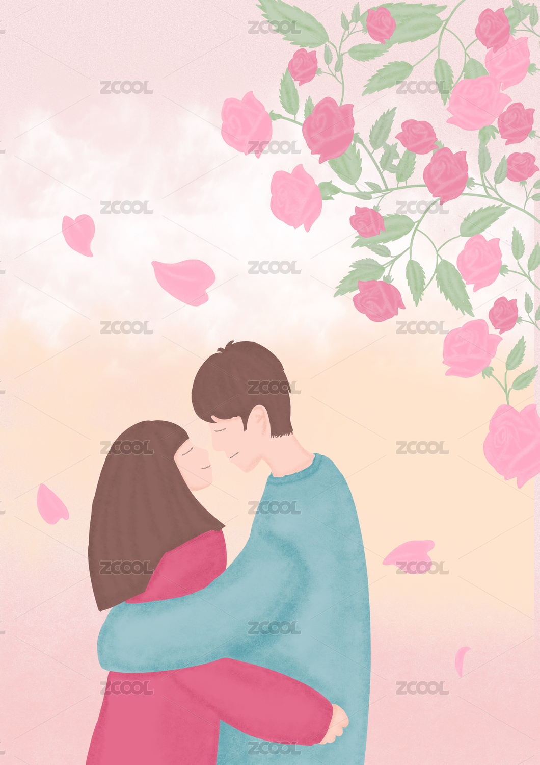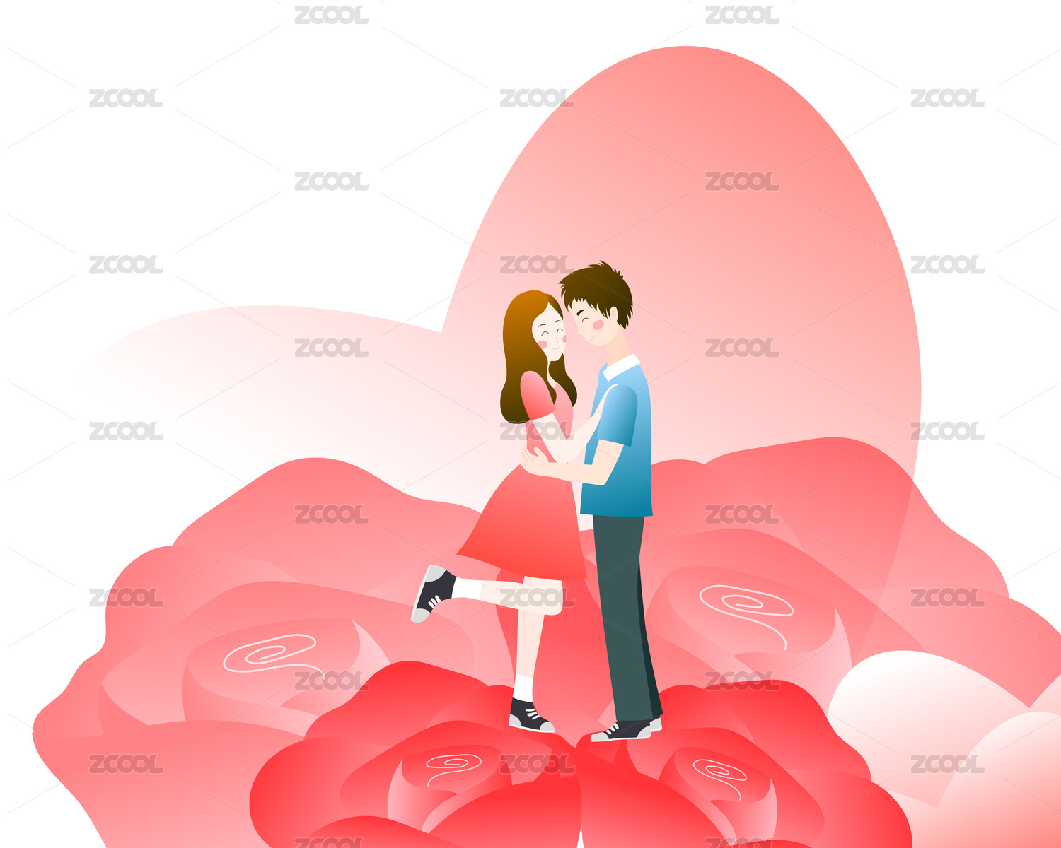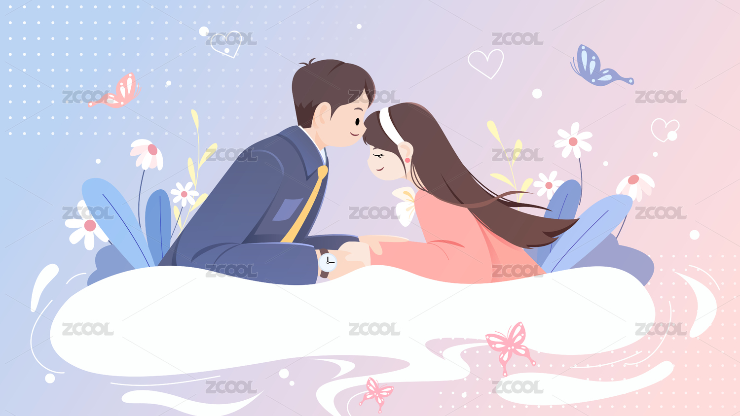 一对情侣牵手亲吻治愈系扁平矢量插画