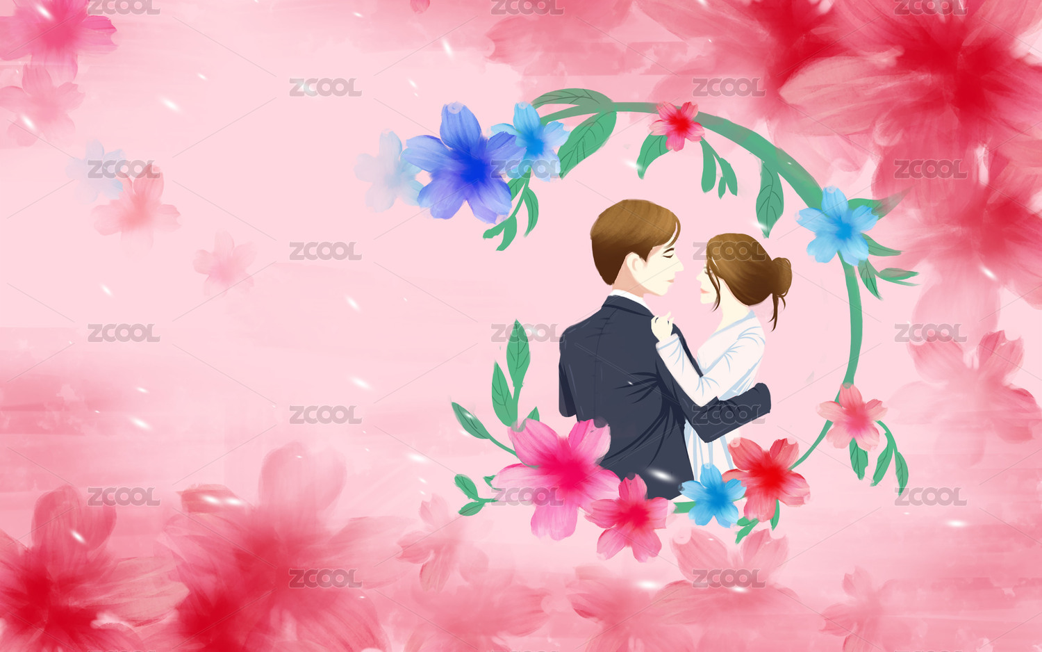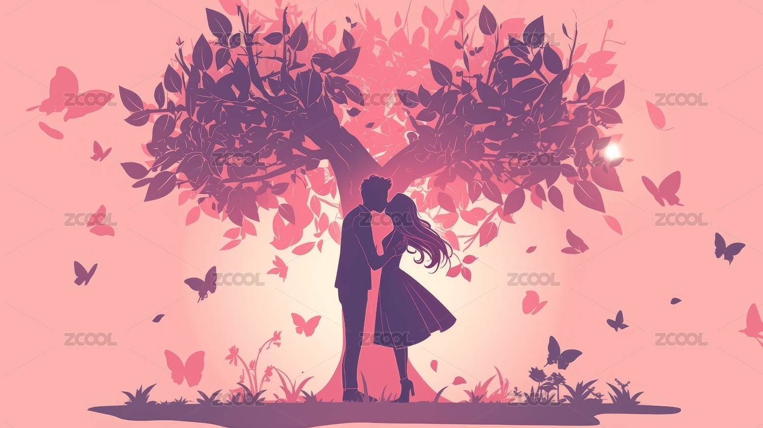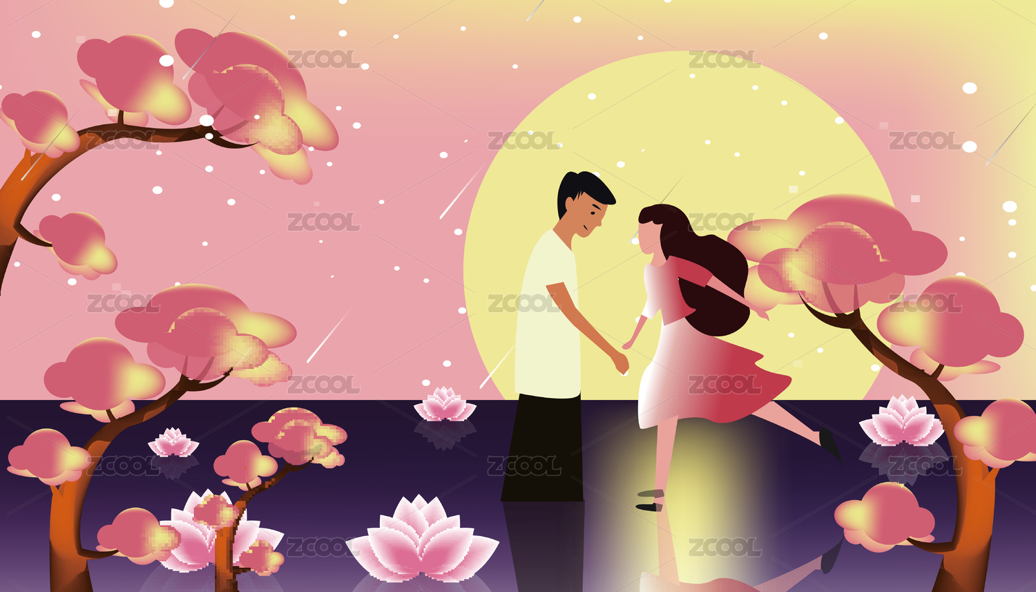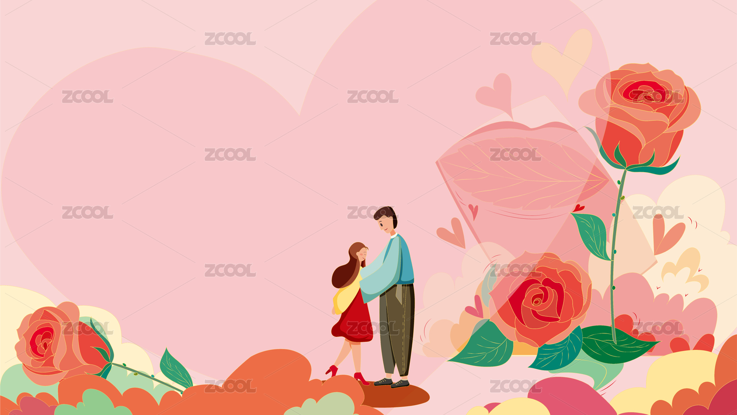 一对情侣牵手亲吻治愈系扁平矢量插画